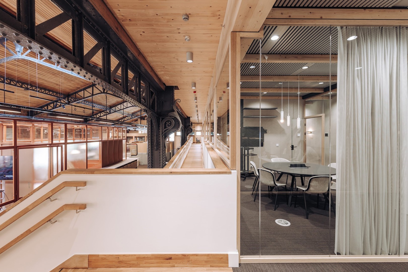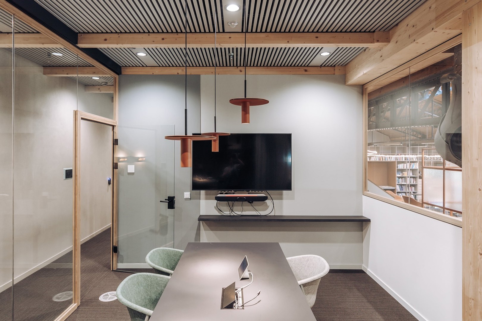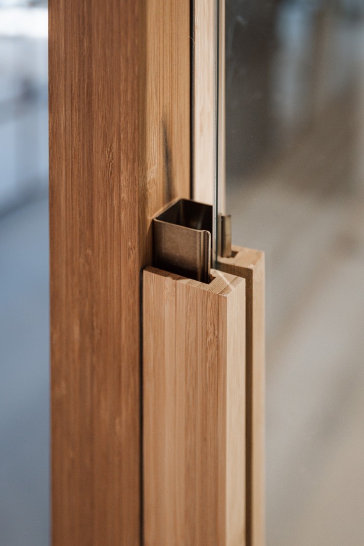 Modulaire glaswand met profielen in bamboe