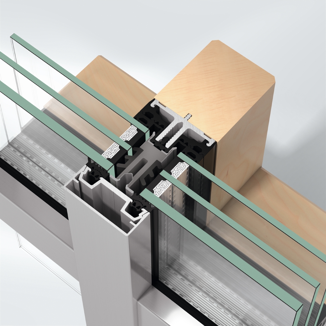 Met het vliesgevelsteem AOC 50 TI (Timber) van Schüco kunnen technisch en creatief overtuigende lichtdakconstructies en grootschalige verticale vliesgevels in een systeembreedte van 50 mm op een houten onderconstructie worden gerealiseerd. AOC 50 TI combineert de voordelen van hout aan de binnenzijde met de karakteristieke duurzame eigenschappen van aluminium aan de buitenzijde. Gepatenteerde systeemcomponenten zorgen voor een eenvoudige veilige installtie met lastoverdracht en schroefgeleiding, zelfs bij grote glasafmetingen en driedubbele beglazing. Op dakconstructies zorgt het innovatieve afdichtingssysteem met geïntegreerde schroefgeleiding voor maximale warmte-isolatie.
