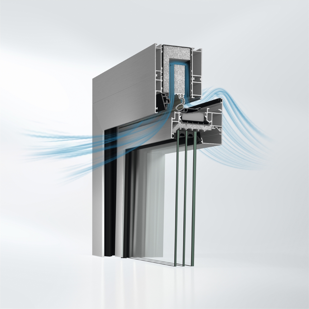 AWS 90 AC.SI is als raamsysteem uitermate circulair. Naast de toepassing van gerecycleerd aluminium is het systeem ook makkelijk uitwisselbaar, dankzij droge montage, met andere raamsystemen van Schüco. De componenten zoals de geluidsreducerende cassettes zijn eenvoudig te vervangen. AWS 90 AC.SI is Cradle to Cradle Silver-gecertificeerd.
