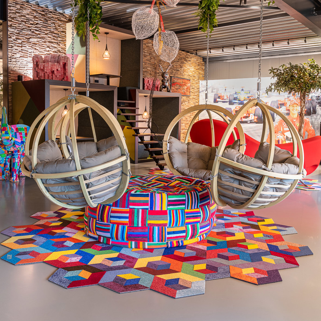 De tegels worden dus gemaakt van productieafval. Daarnaast zijn ze ook circulair omdat ze worden bevestigd met een uniek kliksysteem en zo recupereerbaar zijn.