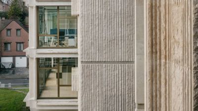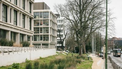 Een groot verlaten kantoorgebouw uit de jaren zeventig, gelegen aan de rand van Brussel, is omgevormd tot een nieuw en dynamisch gemeentehuis voor Gemeente Ukkel. Het gemeentehuis biedt plaats aan 450 ambtenaren en verbindt het gebouw met de buurt door de aanleg van een nieuwe publieke tuin.