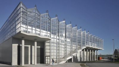 Met Dakserre Agrotopia leveren META architectuurbureau (BE) en van Bergen Kolpa Architecten (NL) in opdracht van Vlaams onderzoekinstituut voor land- en tuinbouw Inagro en REO Veiling het grootste publieke gebouw voor onderzoek naar stedelijke voedselproductie van Europa op.