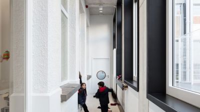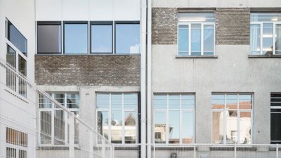 Label Architecture heeft de gemeentelijke basisschool Arc-en-Ciel en het kinderdagverblijf in Sint-Joost-ten-Node uitgebreid en gerenoveerd. De school is gelegen in de meest dense gemeente van Belgiƫ. De uitdaging was dan ook om een goed evenwicht te bewaren tussen de open en bebouwde ruimte. De nieuwe toevoegingen werden zo geschikt om de kwaliteit van de buitenruimte te garanderen.