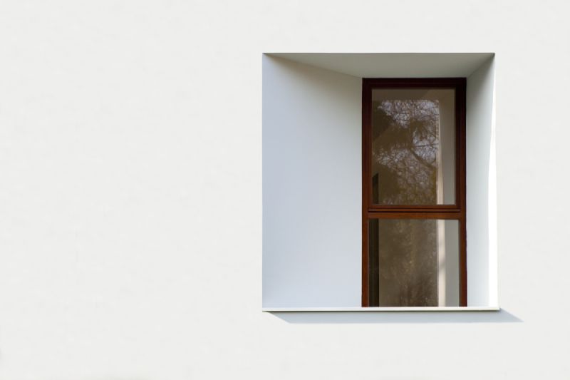 Aansluitend op de gevels van de belendende percelen wordt een gladde witte gevelbepleistering gebruikt. Het gebouw verkrijgt haar expressie door de toepassing van dieperliggende ramen en inpandige terrassen. De aldus ontstane nissen worden binnenin praktisch aangewend om kastruimte te creëren.