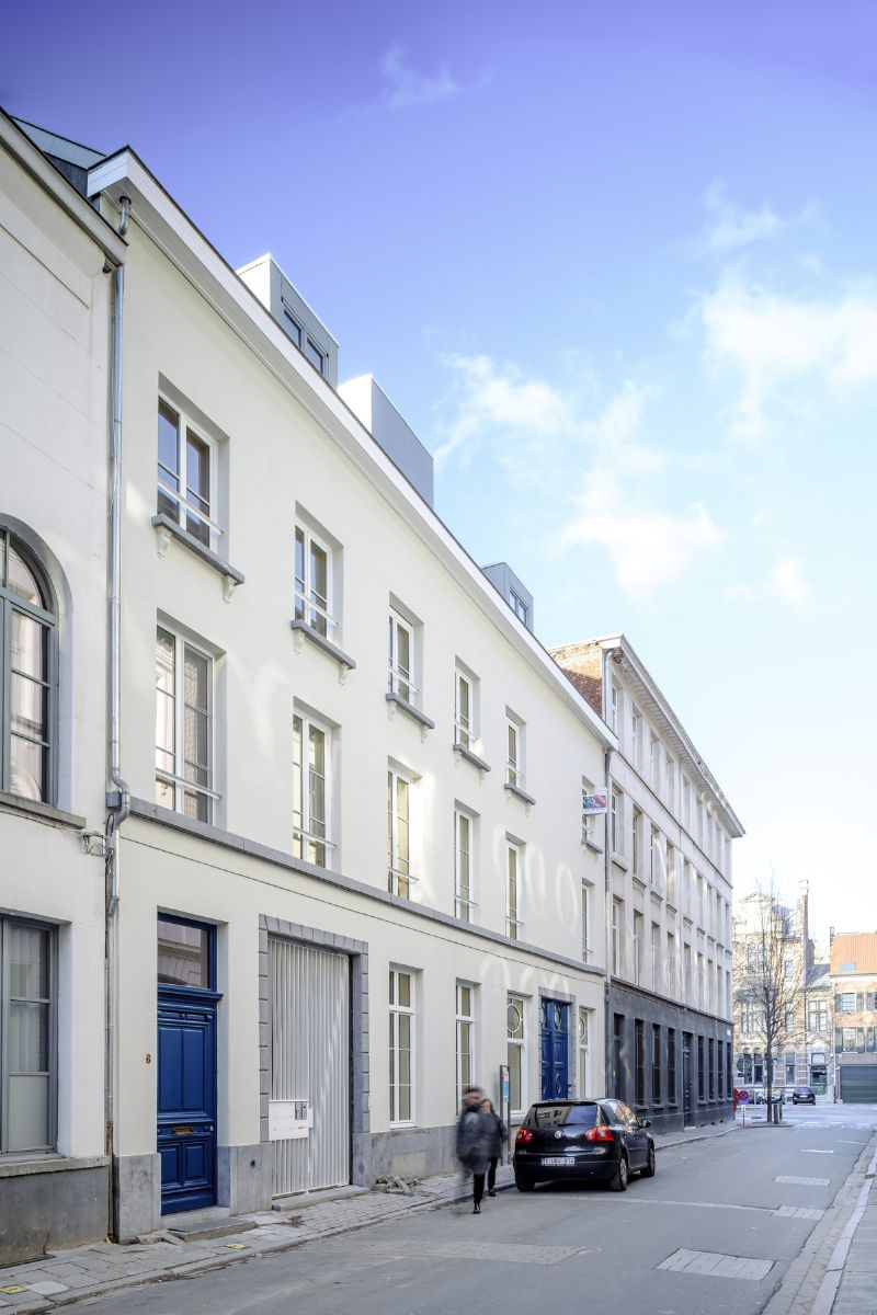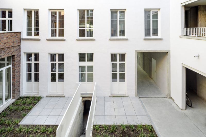 Enofstudio realiseerde achter een historische gevel in opdracht van Vanhalme een nieuw woonproject. Het pand aan de straatkant werd verbouwd en is nu goed voor 7 appartementen, een achterbouw maakte plaats voor een nieuwbouwvolume met drie ééngezinswoningen. Het project is een mooi voorbeeld van hoe de densiteit kwalitatief verhoogd kan worden door inbreiding in het bestaande stratenpatroon.