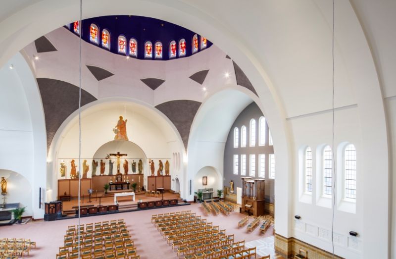 Bij het plannen van renovatieprojecten is het verstandig om meteen rekening te houden met de optimalisatie van het akoestisch comfort. Er bestaan veel verschillende oplossingen die gemakkelijk te integreren zijn in een renovatieplan, zonder de eigenheid van een ruimte te veranderen. Laat u inspireren door de renovatie van de Christus Koningkerk in Brugge. Het ontwerp is van architect Peter Goes. De akoestische bekleding is van Vibrasto van Texaa, verdeeld via DOX acoustics. De montage gebeurde door Aquastra.