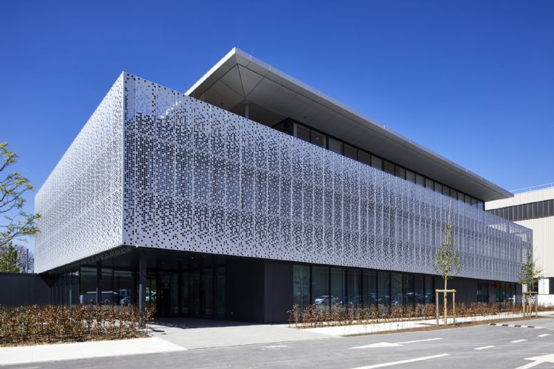 In Seraing realiseerde Mathieu Gijbels een gloednieuw kantoorgebouw voor CMI International. De opvallende gevel van deze nieuwbouw springt onmiddellijk in het oog. Het is zowel esthetisch als zonwerend.