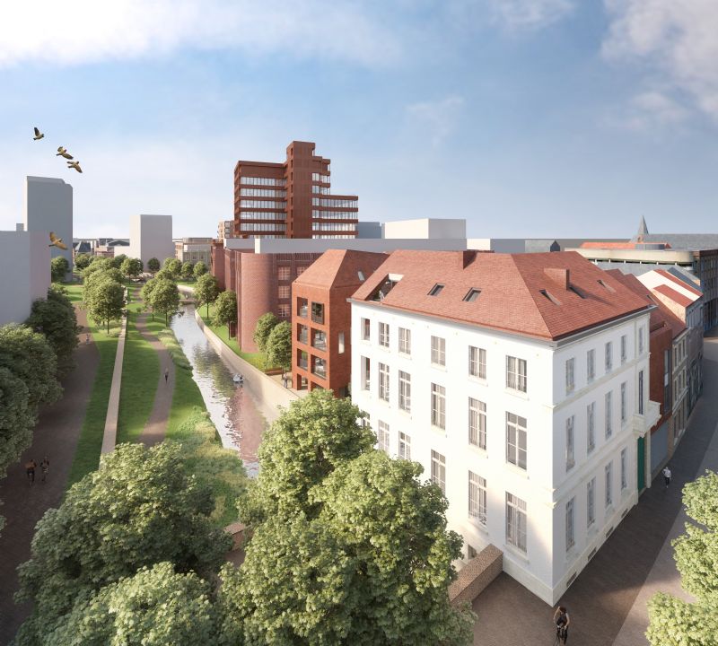Het ruimtelijk uitvoeringsplan (RUP) Hertogensite wil de voormalige ziekenhuissite doen uitgroeien tot een duurzame, autoluwe woonwijk aan het water. Dat RUP is gebaseerd op het eerder voorgestelde masterplan Hertogensite. Onder leiding van projectontwikkelaar Resiterra zorgde CONIX RDBM Architects voor een renovatie-ontwerp voor de gebouwen De Blauwen Oijvaert & De Cleynen Oijvaert. Dwars op de lengte van de Dijle wordt ook een nieuwbouw ingeplant. De Blauwen Oijvaert is de historische naam van de brouwerij die vroeger op de site stond. De twee statige herenhuizen aan de Brusselsestraat worden met respect voor de historische elementen gerenoveerd en er worden 9 appartementen en 2 commerciële ruimtes in ondergebracht. Achterin het nieuwe binnenplein komt een nieuwbouw met 9 appartementen. Het geheel komt te liggen aan de opengelegde Dijle.