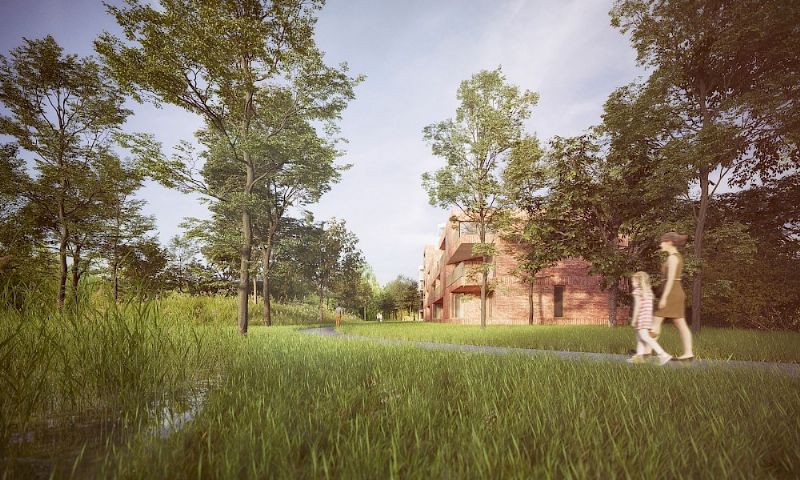 De Heern is opgevat als een woonerf voor meergezinswoningen met de nadruk op de groene omgeving rondom de appartementen. Over het hele terrein zullen 84 appartementen opgetrokken worden aangevuld met 6 handelspanden.