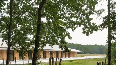 Het Provinciaal Domein Prinsenpark in Retie kreeg een nieuw dienstencentrum. Het gebouw brengt de infrastructuur voor de bezoekers, de administratieve werking en het bosbeheer samen in een nieuw ensemble van twee verfijnde houten gebouwen. Grote schuine daken met lange v-vormige dakgoten geven identiteit aan het project dat voldoet aan de passiefhuisnorm en circulaire bouwtechnieken demonstreert.