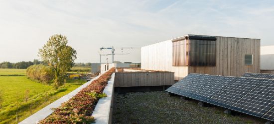 Het kantoorgebouw en magazijn De Pit in Nevele is na ruim anderhalf jaar bouwen in juni 2012 gerealiseerd. EcoPuur stelde zich tot doel een hedendaags gebouw op poten te zetten dat ook qua energieverbruik voldoet aan de eisen van de 21ste eeuw. Het kantoor bestaat uit 3 zones met bureau-eilanden, 3 akoestisch afgezonderde werkruimtes, een kleine vergaderzaal en een grote polyvalente ruimte voor seminaries of grote vergaderingen. Verder zijn er nog: de eetruimte, 2 keukens, demoruimte, toiletten en douches, een lift en een technische ruimte bovenaan. Het projectteam had veel oog voor milieuvriendelijkheid en energiezuinigheid. In het kantoorgebouw vertaalt dit zich naar slimme technologie en ecologische materiaalkeuze. Het volledige concept is een voorbeeld van maatschappelijk verantwoord bouwen.