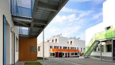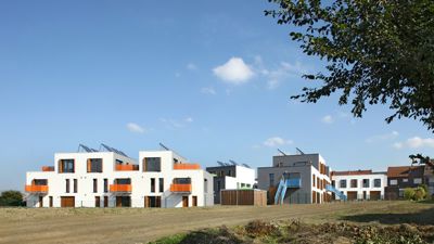 Ecowijk Harenberg is een complex dat plaats biedt aan dertig passief- en vijf nulenergiewoningen. Dankzij de integratie van verschillende duurzame technieken zoals zonnepanelen, een warmtepomp en mechanische ventilatie hebben de bewoners er een maandelijkse verwarmingskost van ongeveer 5 euro. Een goed doordachte oriƫntatie en doorgedreven isolatie helpen de bewoners om te besparen op hun energiefactuur.