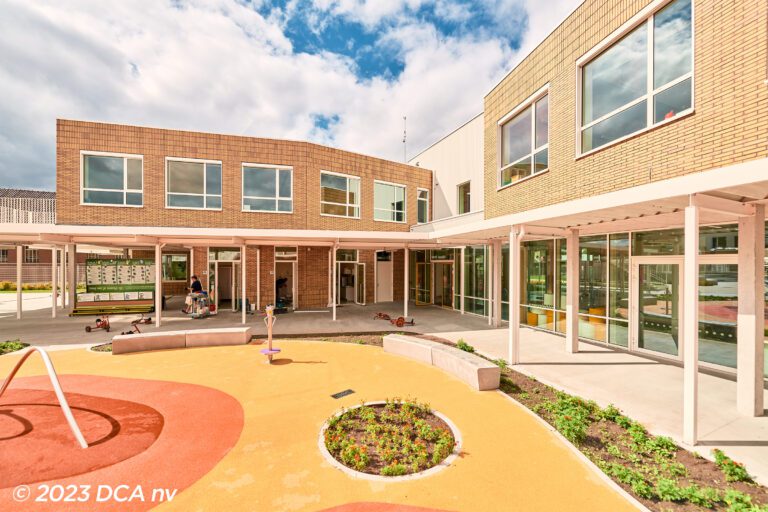 De gemeentelijke basisschool De Stip in Arendonk, voorheen gekend als Sint-Jan, wou zichzelf heruitvinden. De school besloot na een masterplan om zijn twee vestigingen te verlaten en een school te realiseren op een oud voetbalterrein. Markant Architecten stond in voor het ontwerp en zorgde ervoor dat de binnen- en buitenruimtes mooi samengaan. De inrichting van het dak lag in handen van Zoontjens.