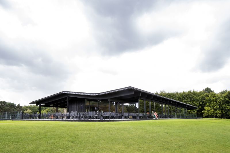 Het ontwerp vertrekt vanuit een landschappelijke integratie van beide nieuwe gebouwen. Op harmonieuze wijze worden ze ingevoegd in het bestaande assenstelsel van de historische gebouwen op de site. Het clubhouse werd ontworpen als een samenvoeging van vlakken, zwevend boven het landschap.