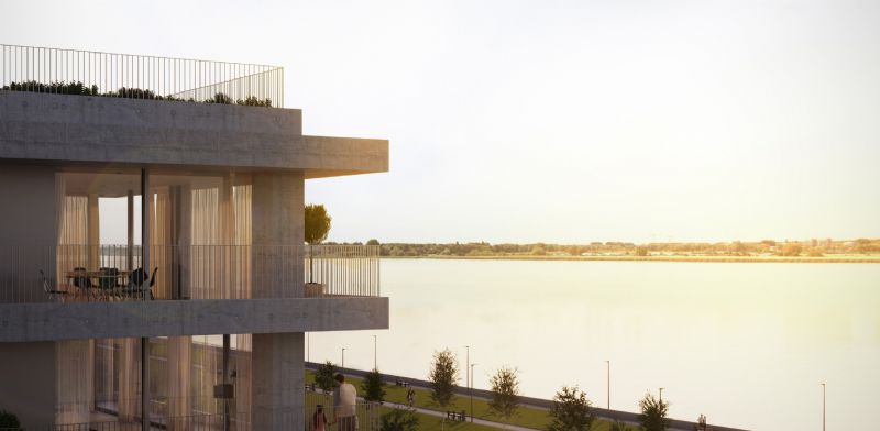 Johannes Norlander is een grote naam in thuisland Zweden. Met HÅVN ontwerpt hij voor het eerst buiten de eigen landsgrenzen. De Schelde voert de boventoon in het ontwerp, dat speelt met transparantie en licht. Het gebouw is loodrecht geörienteerd op de stroom, en zo ingedeeld dat elk appartement maximaal uitzicht heeft over het water. Grote raampartijen van vloer tot plafond brengen het daglicht tot diep in het hart van de leefruimtes. Pure lijnen en Scandinavische degelijkheid op de mooiste locatie van Antwerpen.