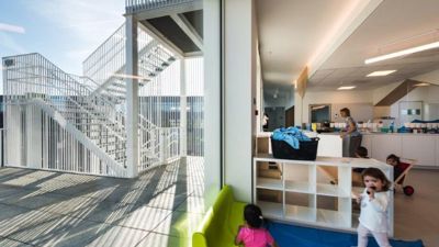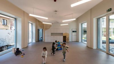 Plaats vinden voor kwalitatieve kinderopvang: het is en blijft een pijnpunt in Antwerpen en de omliggende randgemeenten. Dat er mits een gezonde dosis creativiteit toch uitstekende oplossingen mogelijk zijn, bewijst Het Toverbos in Merksem. De gloednieuwe crèche ontsproot uit een voormalig kloostergebouw en huisvest drie leefgroepen van achttien kinderen.