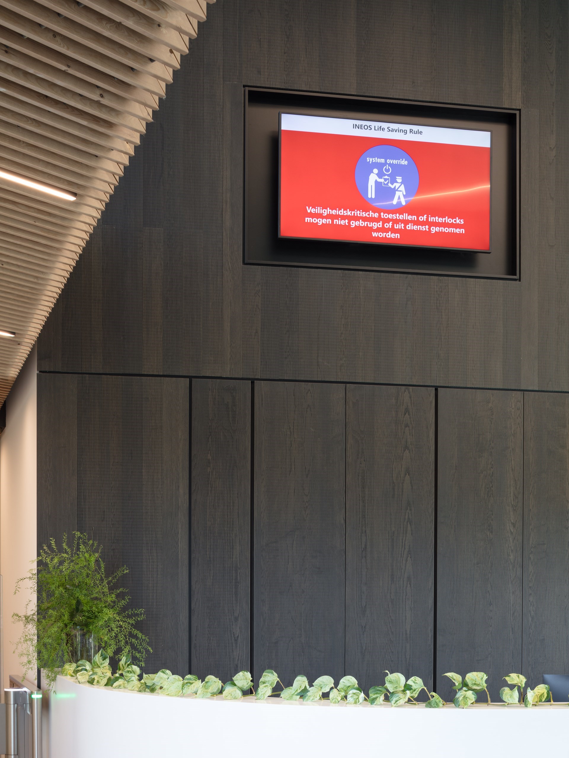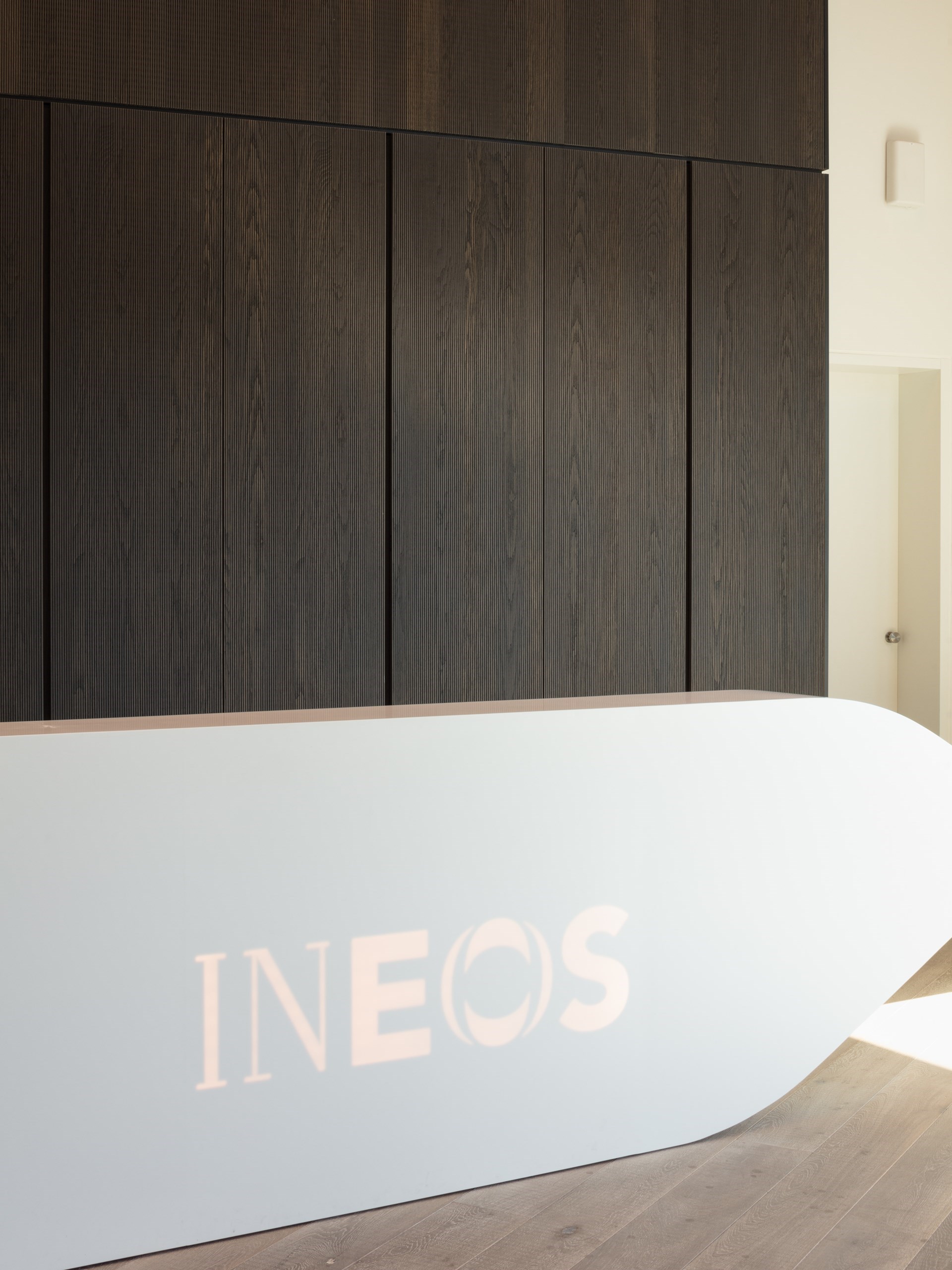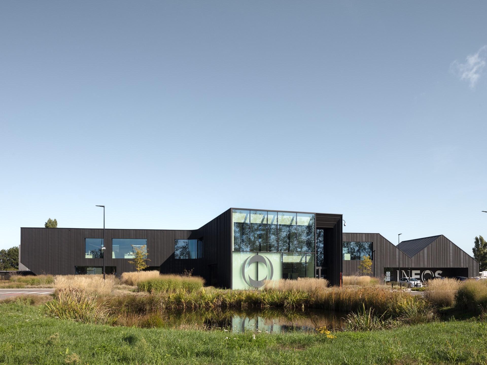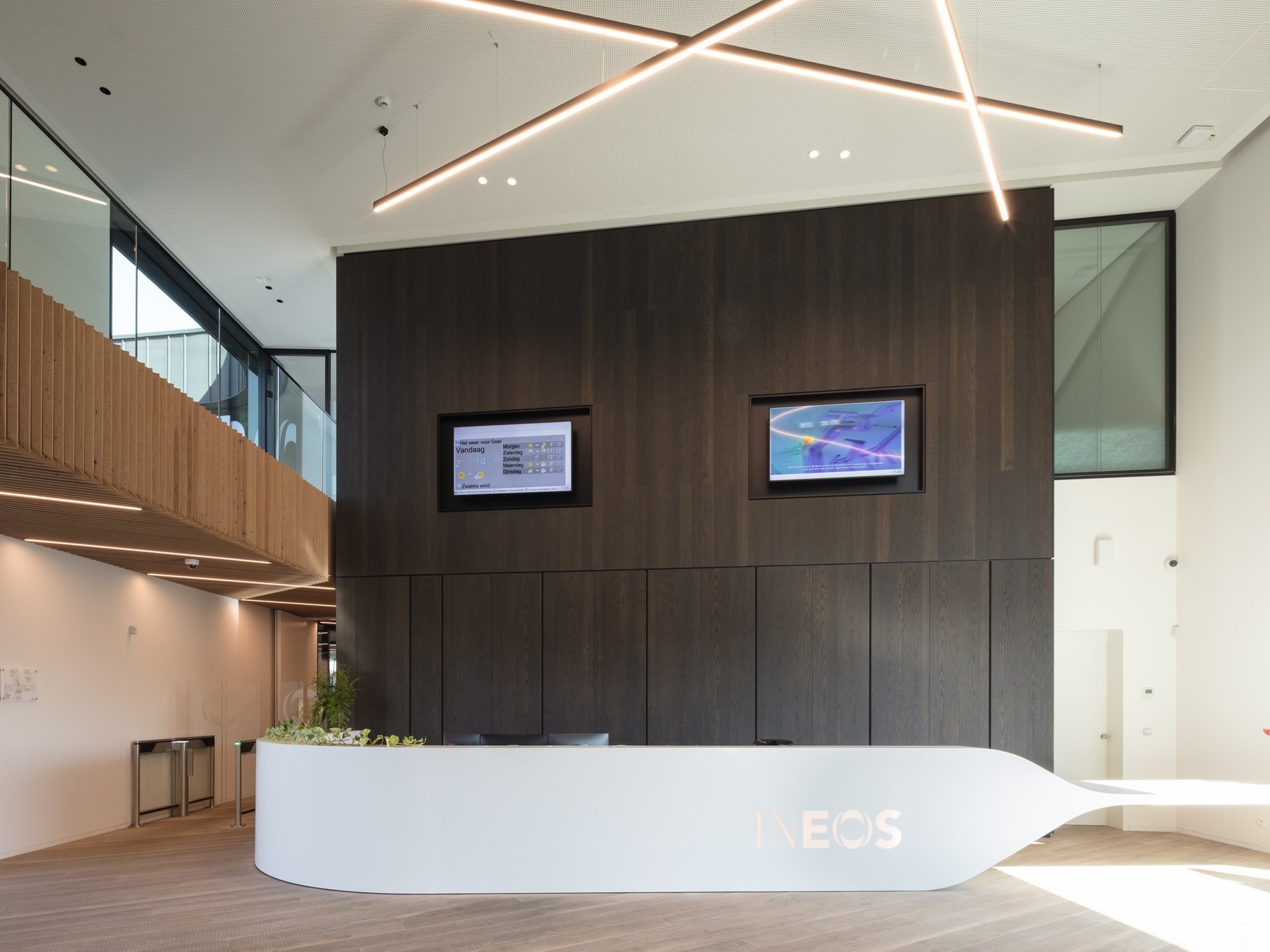 Site INEOS Geel van de Britse groep INEOS heeft in minder dan 1 jaar tijd een nieuw kantorencomplex laten bouwen van 2750m². Een ontwerp van Architectenbureau Wil-Ma Wastiau ism bouwonderneming van Roey en o.a. interieurbouwer Vanhout.pro.