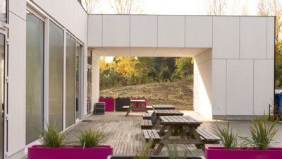 Als pilootschool voor kinderen met autisme, waar termen als ‘visualisatie’ en ‘verduidelijking’ kernbegrippen vormen, is een overzichtelijke en herkenbare structuur een dringende noodzaak. Hiertoe wordt een nieuwe centrale as uitgewerkt, als duidelijke ruggengraat op de campus waarlangs de verschillende schoolgebouwen georganiseerd liggen. Deze as wordt afgewisseld met een verscheidenheid aan actieve en passieve speelruimtes.