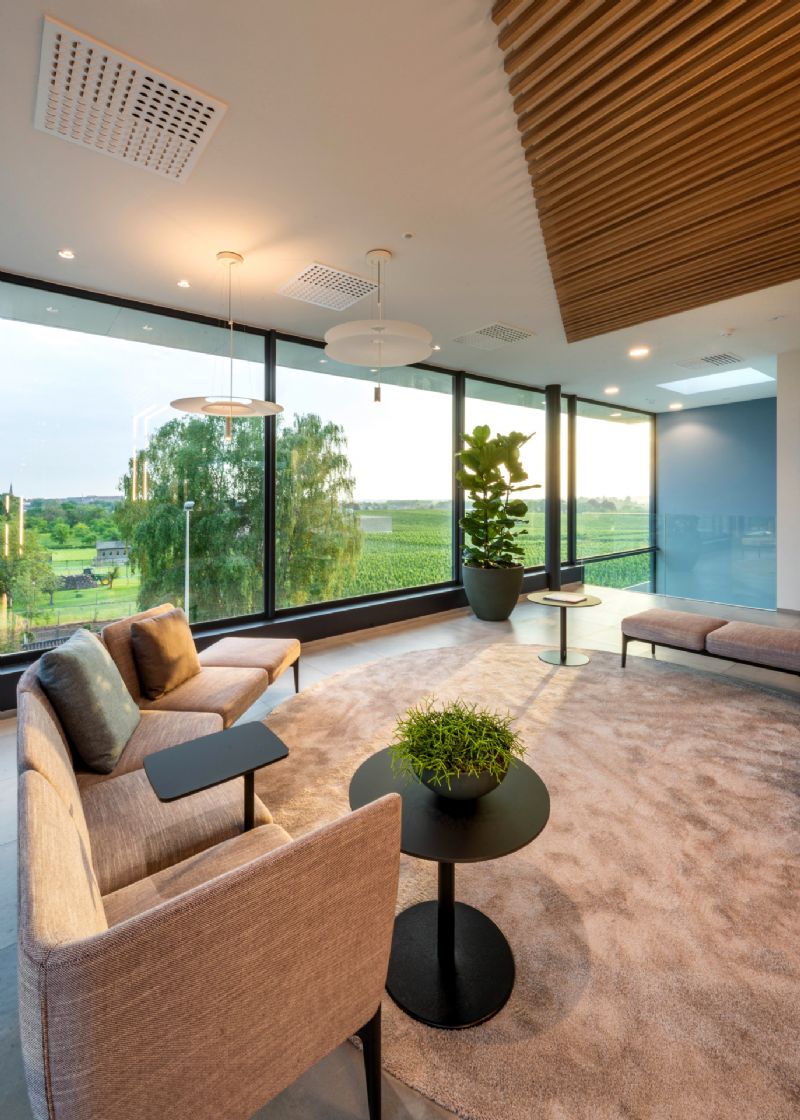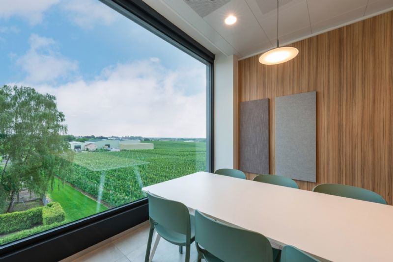 Klaarchitectuur ontwierp een kantoorgebouw in Borgloon dat erop gericht is om de omliggende natuur zoveel mogelijk binnen te laten. Kantoormedewerkers behouden binnen de voeling met de glooiende fruitplantages die het bedrijf omringen en genieten buiten van een rustige en groene sfeer, weg van alle bedrijvigheid.
