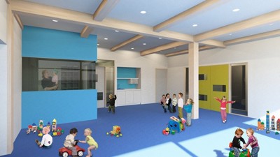 Het kinderdagverblijf heeft een driehoekige vorm dat werd opgedeeld in een rasterstructuur van 5.5 x 5.5m. waarbij de kruispunten fungeren als draagstructuur van het gebouw. Deze houten structuur is opgebouwd uit gelamelleerde spanten die volgens het Sherpa-systeem werden gemonteerd.