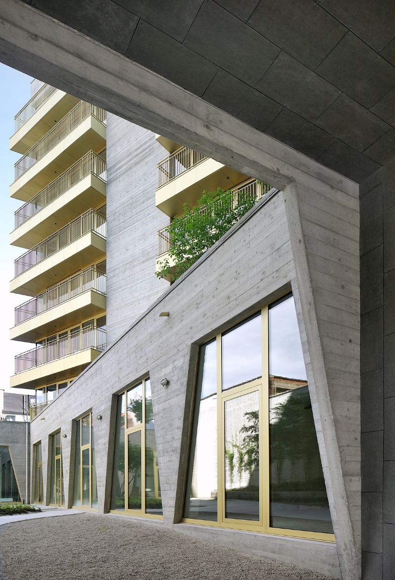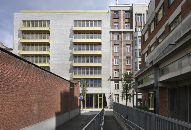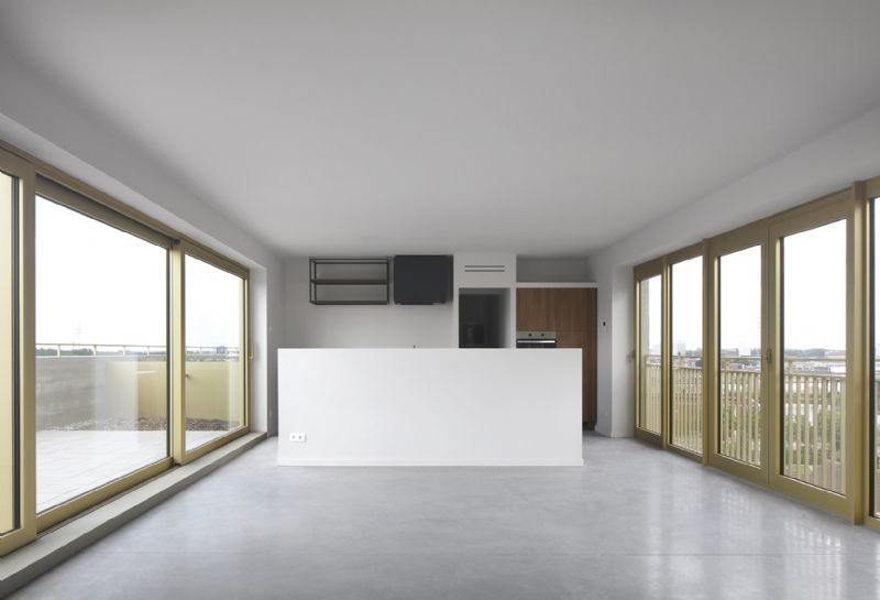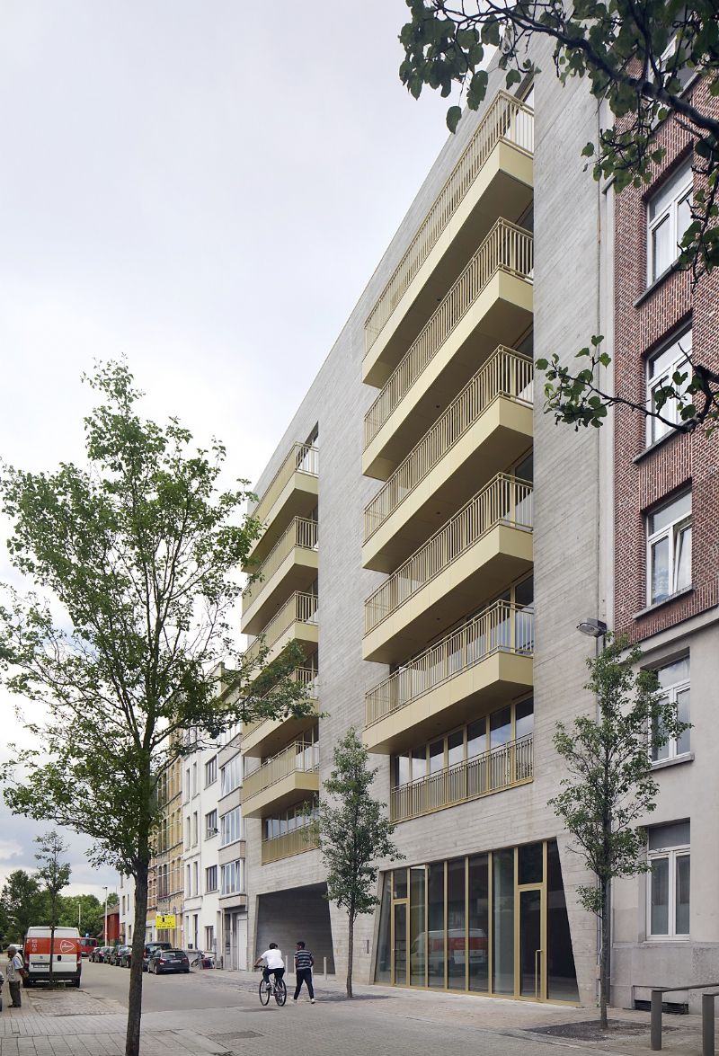 In de Slachthuisbuurt in Antwerpen heeft META het appartementsgebouw Koning Noord afgewerkt: een project met 26 woningen, een kinderdagverblijf en een werkruimte. META ontwierp in opdracht van ISTATE 2 volumes in ruw beton, verbond de volumes met een plint rond de binnentuin en werkte het gebouw af met goudkleurig schrijnwerk en balkons. Door een doorgedreven rationaliteit in concept en uitvoering voorop te stellen, maakt META ruimte voor het ontwerpen van een genereus gebouw.