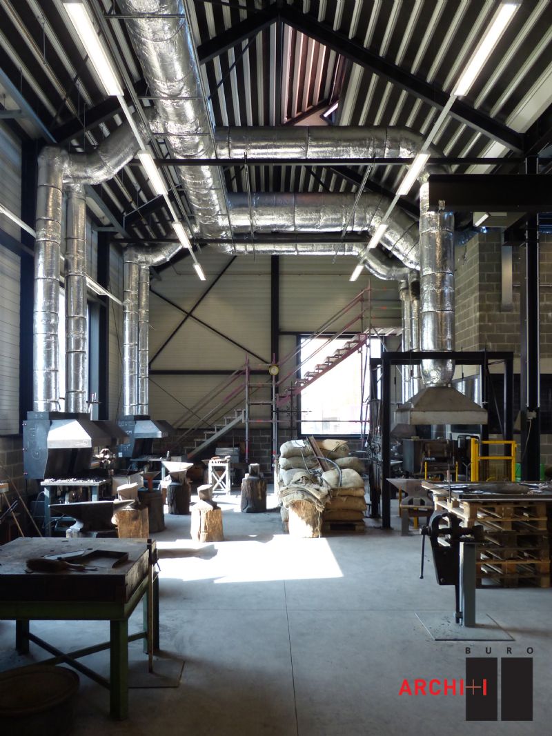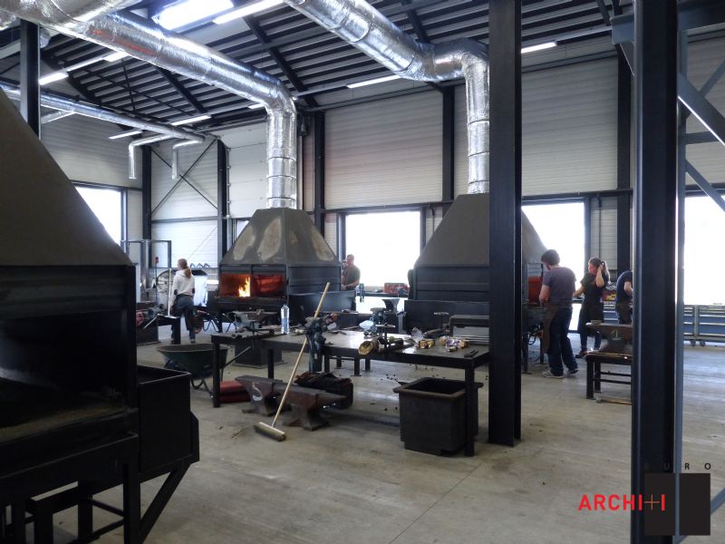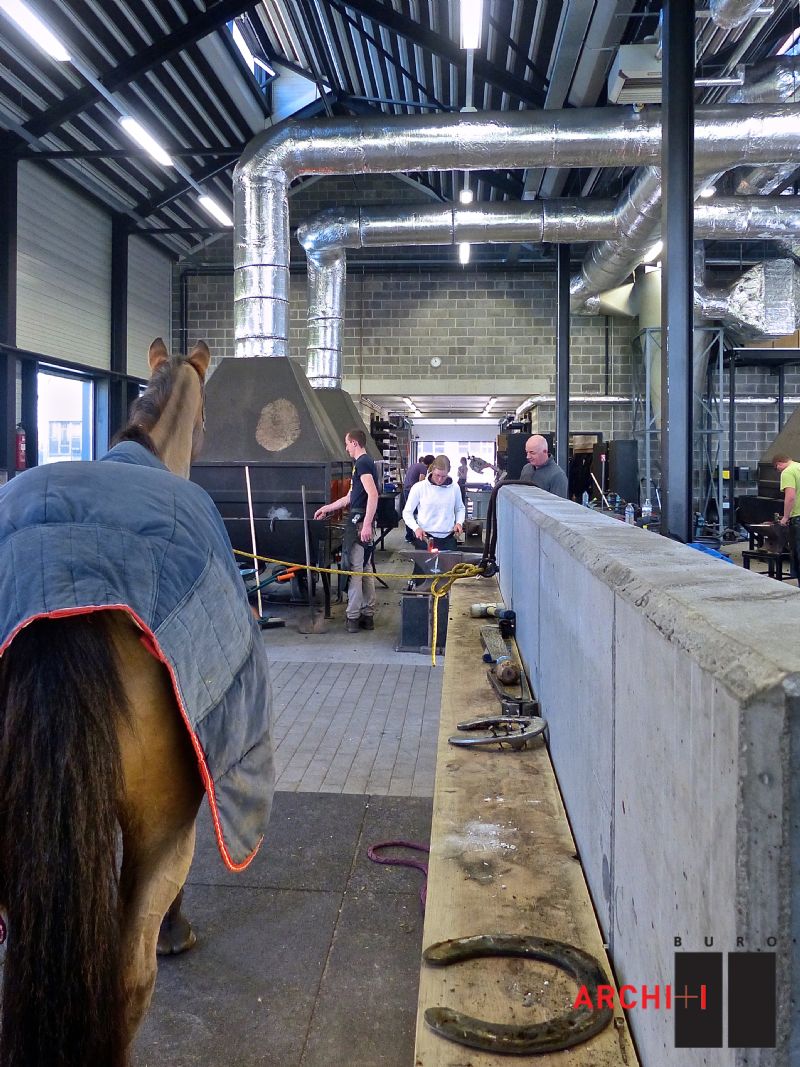De nieuwe kunst- en hoefsmidschool in Anderlecht is een ontwerp van BURO II & ARCHI+I. Deze nieuwbouw verenigd de twee opleidingen kunst- en hoefsmeder? op één locatie en moet het uithangbord voor het ambacht zijn door het gebruik van koperkleurige staalplaat.
