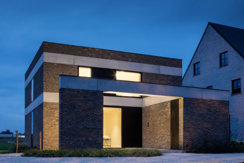 Het Lokerse bureau TOOP architectuur kruiste voor een eengezinswoning in Waasmunster de degens met de strikte bouwvoorschriften en kwam met een creatieve oplossing. De bouwvoorschriften eisten een woning ingeplant op 8 meter van de voorste perceelgrens en met een maximale bouwdiepte van 15 meter. Het resultaat is een compacte BEN-woning van 10 meter op 10 meter.