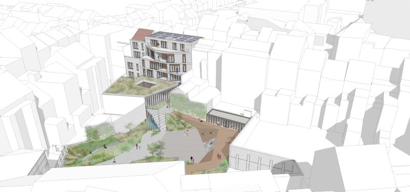 Op de plek van de vroegere Renaultgarage in de Munthofstraat in Brussel komen binnenkort 9 woningen, een crèche en een nieuwe doorgang tussen park Coenen en het Munthof.