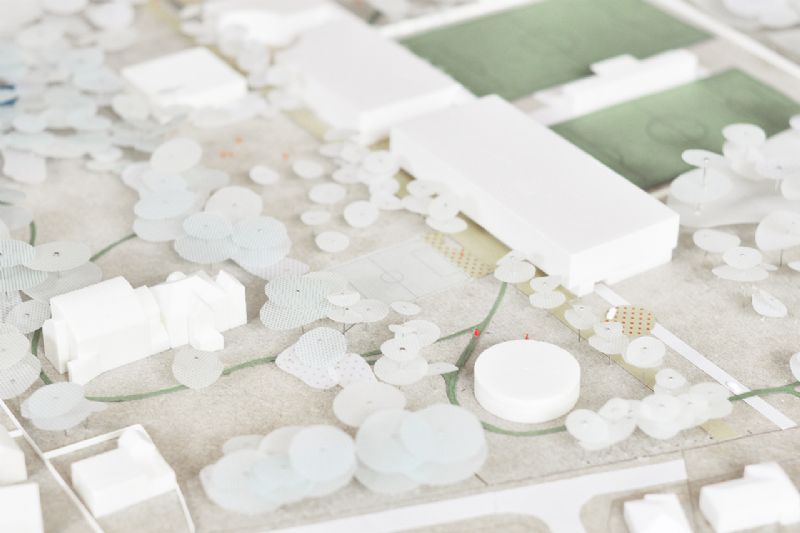 De inplanting koppelen we aan drie ambities voor de site: het uitbouwen van de site als onderdeel van een levendig centrum, met een sterkte groenstructuur en een multimodale ontsluiting.