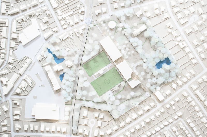 Met de afbraak van het bestaande openluchtzwembad Neptunus, verdwijnt een structurerend element van de site vandaag. Het nieuwe gebouw heeft het potentieel de site op een nieuwe manier te structureren om zo de Neptunussite optimaal uit te bouwen als centrumplek in de wijk.