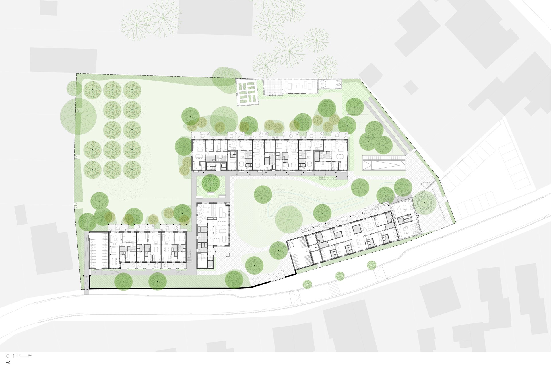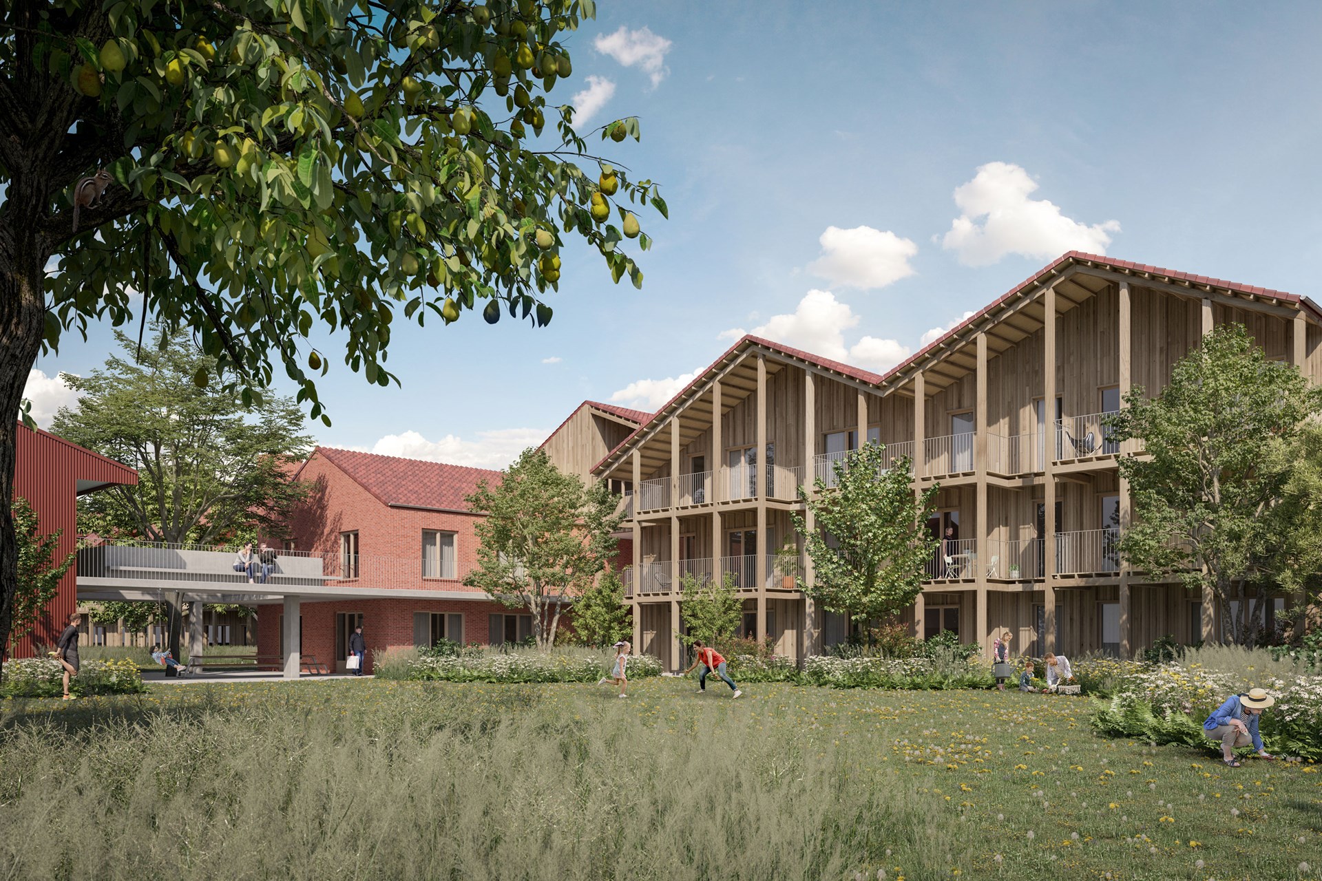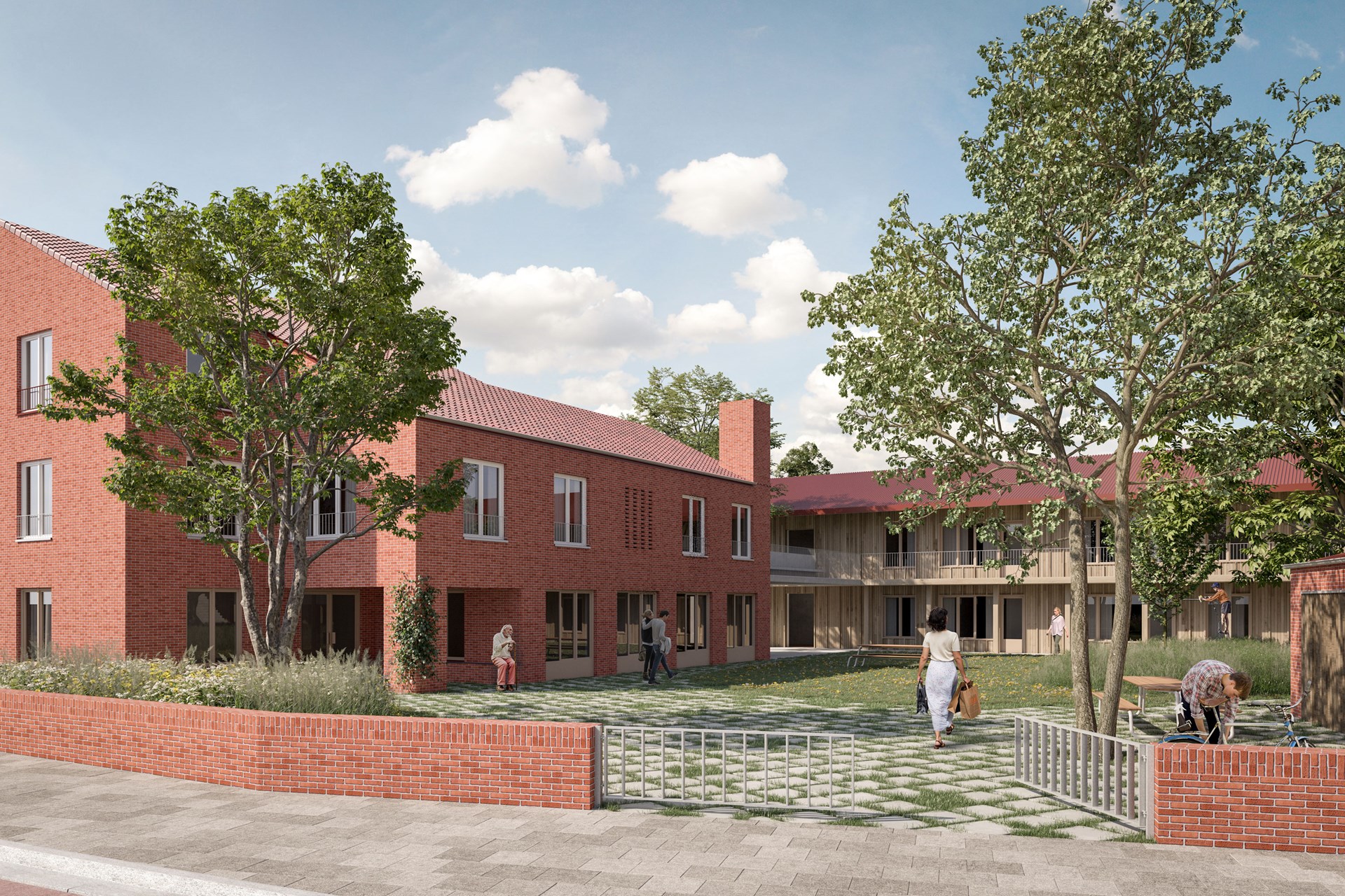 In opdracht van wooncoop ontwerpt ectv architecten het cohousingproject Moos°Herk in de Hasseltse deelgemeente Sint-Lambrechts-Herk. Het projectgebied – bestaande uit een voormalig schoolsite en aanpalende weide – is in eigendom van de stad Hasselt en wordt via een erfpachtovereenkomst overgedragen aan wooncoop. Het ontwerp maakt connectie met de buurt en elkaar mogelijk door de vele ontmoetingsplekken. Want dat is wat cohousen doet, je kan op ieder moment van de dag kiezen voor me-time of ontmoeting. Niets moet, maar er wordt plots veel mogelijk.