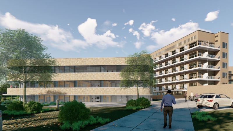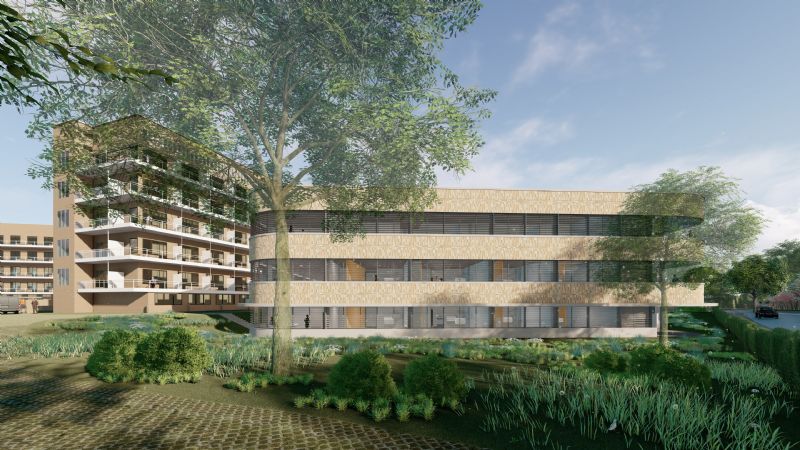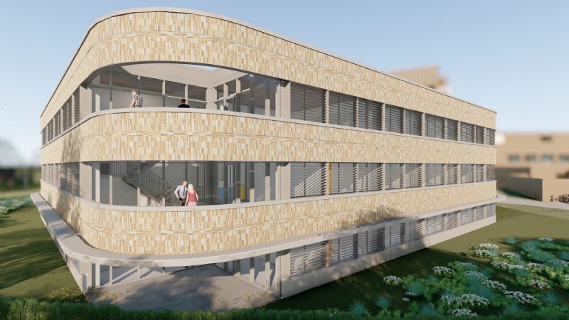De geplande werken zijn afgestemd op de architectuur van de omringende bestaande gebouwen. Voor materialisatie wordt gestreefd naar een horizontale gelaagdheid. Hierbij worden beglaasde stroken afgewisseld met banden in metselwerk. Het gevelmetselwerk zal uitgevoerd worden met een mix van geel-bruine gevelsteen (75%) en lichtgrijze gevelsteen (25%). Hierdoor krijgt het gebouw een eigen doch ondergeschikte identiteit.