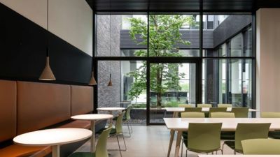 De firma Staalbeton uit Rijkevorsel heeft een gloednieuw kantoorgebouw. Schellen Architecten paste de nieuwe kantoren in tussen twee bestaande loodsen. Ze vormen een poortgebouw dat eenheid brengt op de site. Om het vrachtverkeer niet te belemmeren kunnen de vrachtwagens onder het nieuwe kantoor doorrijden. Het hart van het kantoor is een patio met een solitaire boom, die enerzijds voor het binnenvallen van natuurlijk licht zorgt en anderzijds de natuur in het gebouw integreert.