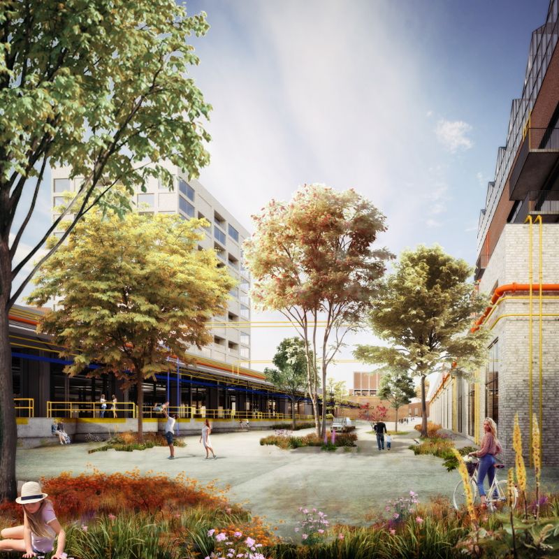 Van Marcke verhuisde in het voorjaar van 2018 van de site aan de Weggevoerdenlaan in Kortrijk naar een nieuw, state of the art logistiek centrum aan de rand van de stad, in Aalbeke. De site in het stadscentrum blijft echter eigendom van Van Marcke. En de badkamer-, keuken- en verwarmingsspecialist sloeg de handen in elkaar met de stad Kortrijk om er een nieuw, toekomstbestendig stadsdeel te realiseren. UAU collectiv en OMGEVING wonnen de ontwerpwedstrijd. Ze maakten het verschil door in te zetten op het behoud van de loodsen die de site nog steeds sieren. Het nieuwe stadsdeel behoudt zo een duidelijke link met het verleden.