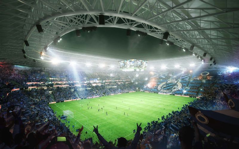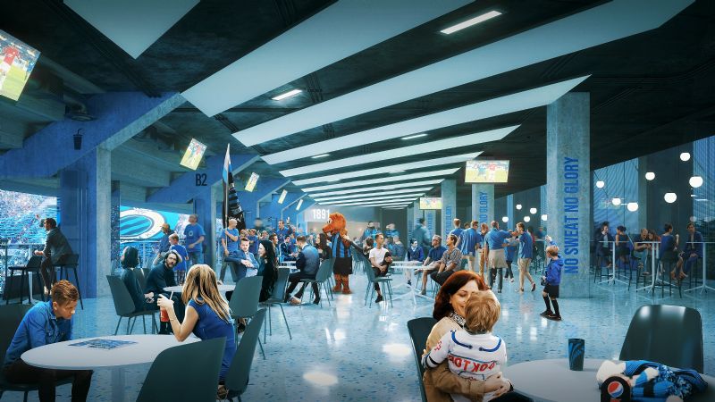 Het nieuwe stadion - dat er in 2023 komt - verrijst op de locatie van het huidige Jan Breydelstadion (29.000 plaatsen) en telt 40.000 plaatsen, maar is toch compacter. Het wordt gebouwd in de wijk Sint-Andries, in het hart van een nieuw park (onlangs voorgesteld door Bart Verhaeghe, voorzitter van de club). Een van de vele hoogtepunten zijn de tribunes met een helling van bijna 35 graden. Zo hoeft de 'spionkop' niets van de wedstrijd te missen.