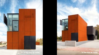 Het programma voorziet een centraal bedieningsgebouw voor de sluis 1 en 11 bruggen op het kanaal. Daarnaast worden er ook bureel- en werkruimte voor het personeel van nv De Scheepvaart in ondergebracht. Context: - de sluis en brug - het terrein is driehoekig en omsloten door 2 straten en het kanaal - het terrein is tweeledig: met aan het kanaal een 'leeg' terrein met verspreid enkele kleine gebouwtjes aansluitend en achterliggend een lager gelegen terrein met de conciërgewoning en een groene buffer - er is een duidelijke lengterichting vanwege het kanaal Uitgangspunten - prioriteiten: - de hoofdfunctie van het gebouw is de bedieningsruimte - deze bedieningsruimte heeft nood aan visueel contact met de brug en de sluis, zowel stroomopwaarts als afwaarts van het kanaal - alle functies van het gebouw hebben te maken met het kanaal, dus best ook aangrenzend - deze functies vereisen geen relatie met de achtergelegen straat (Zuiderdijk) met woningen - centrale éénduidige circulatie en groeperen van functies om te komen tot een eenvoudige en klare indeling Materialen: - weervaste staalplaten voor de bedieningsruimte, als reminiscentie naar het staal van de sluis, de brug, de boten, ... - baksteen voor de overige gavels - thermische isolatie in muren en daken volgens EPB-regelgeving - aluminium ramen met superisolerend en zonwerend glas - vaste zonwering met lamellen - zichtbaar binnenmetselwerk in betonblokken voor het gelijkvloers - groendaken, de andere gewone platte daken voor de regenwaterrecuperatie Energiegebruik: Fotofoltaische zonnepanelen op het dak, helpen het gebouw in haar eigen elektriciteitsgebruik. Door regenwaterrecuperatie wordt een regenwaterput van 15.000L gevoed, die via een pomp de toiletten, uitgietbak en kraantjes voor buitengebruik en reiniging van de wagens bediend.
