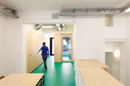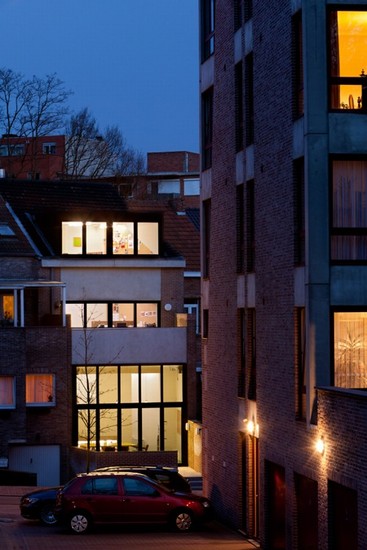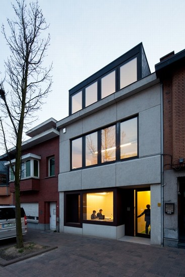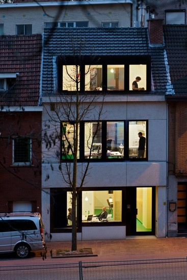 Onlangs is De Gouden Liniaal Architecten verhuisd naar hun nieuwe burelen. In het stadscentrum van Genk werd een leegstaand handelspand met bovenliggend appartement grondig verbouwd: de gelijkvloerse ruimtes werden opengebroken en ingericht als ontvangst- en vergaderruimtes, achteraan werd een heuse veranda toegevoegd. De werkruimtes liggen verspreid over de opengewerkte kamers op de verdiepingen.