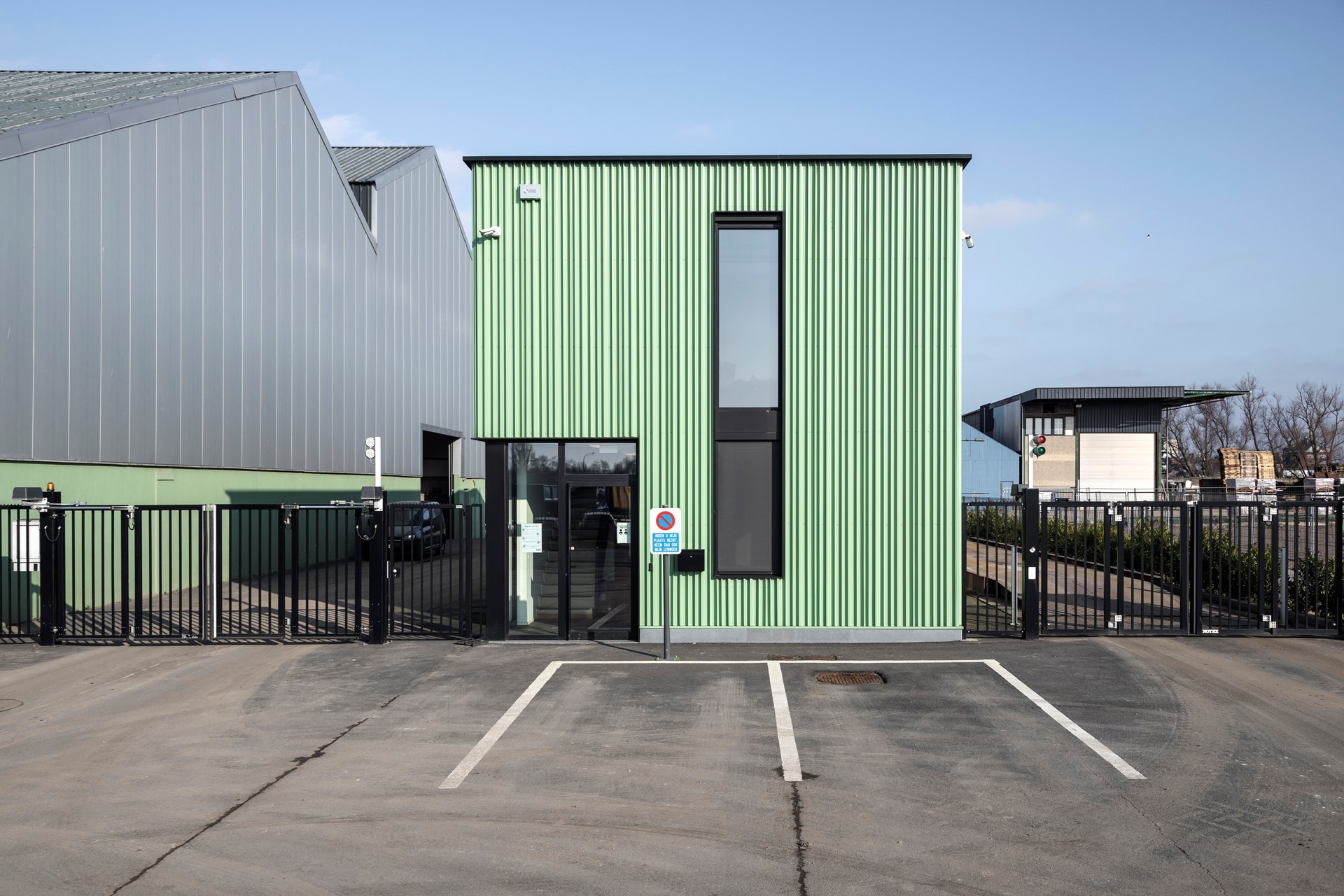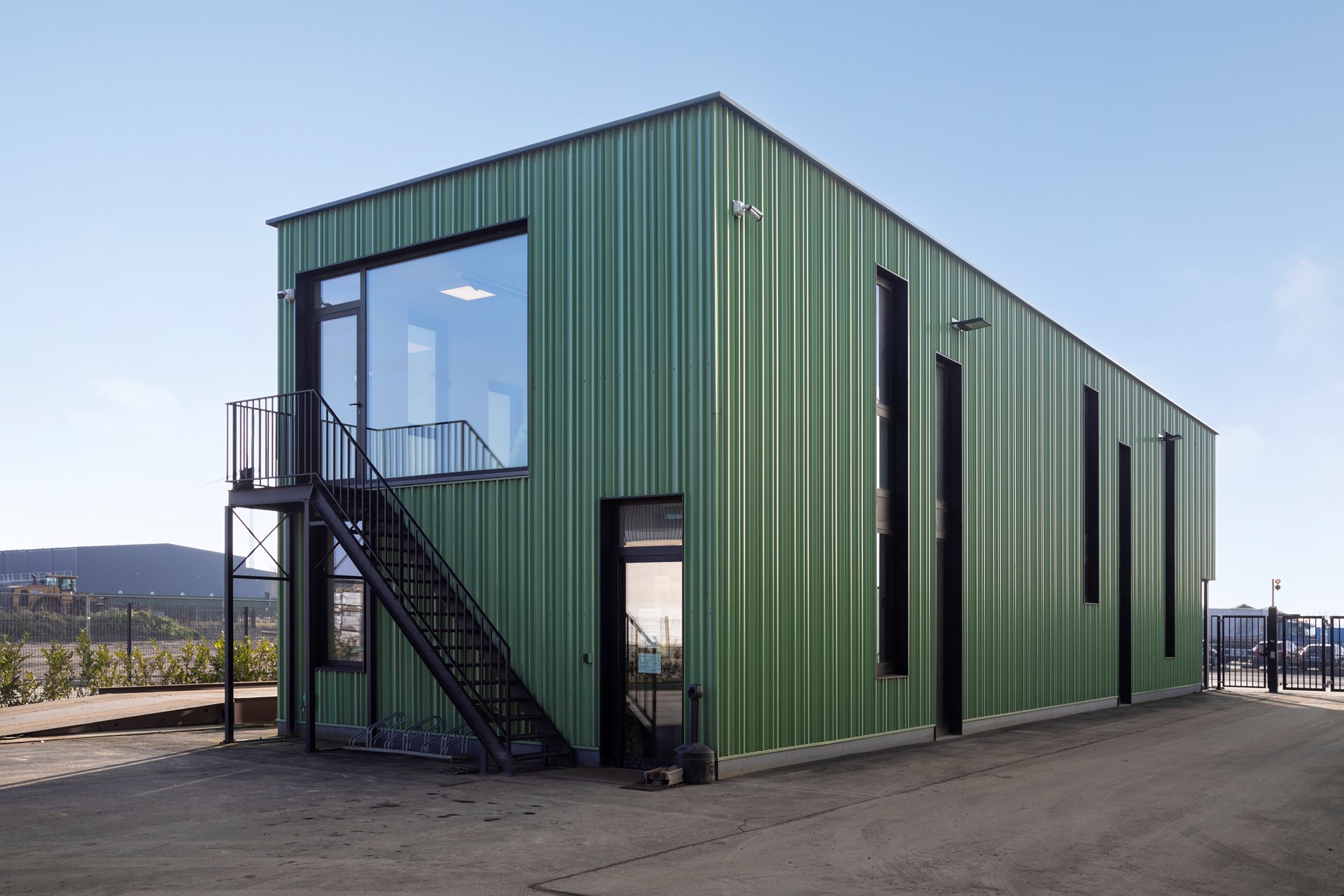 Voor de kantoren van Roefs Group in Puurs wilden de bouwheer en architect het groene karakter van de sector prominent tonen. Hiervoor is er gekozen voor een gevelplaat Eclectic 50 die in 2 types werden toegepast in de gevel en daarnaast de groene kleur.