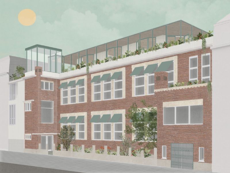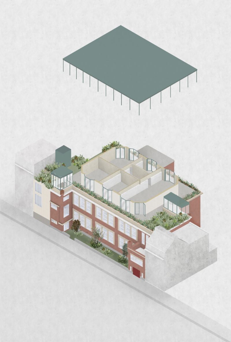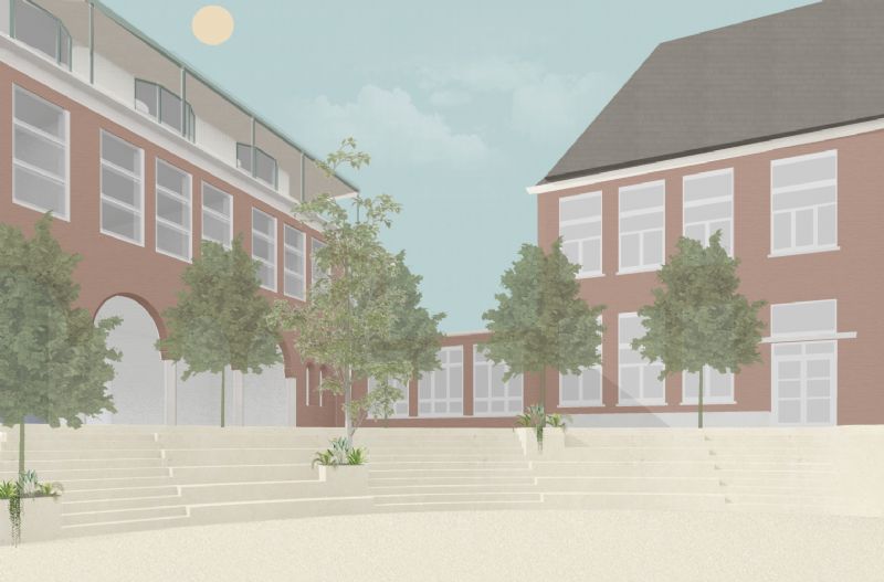 Wat begon als een kleine opdracht voor een derde bouwlaag op een schoolgebouw in Antwerpen is ondertussen al heel wat groter geworden. POOT architectuur ontwerpt niet enkel de optopping, maar neemt ook het lerarenhuis en de speelplaats van de katholieke school onder handen. Enkele goedgekozen materialen zullen voor een verbinding zorgen tussen de aparte delen. Daarnaast laat het architectenbureau vooral de architectuur spreken in het sobere gebouw.