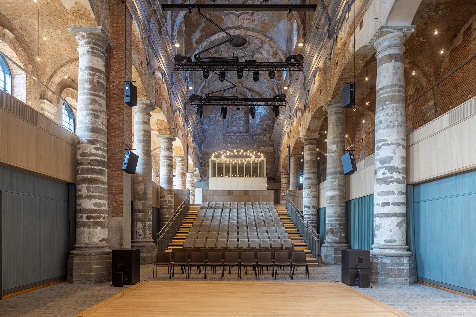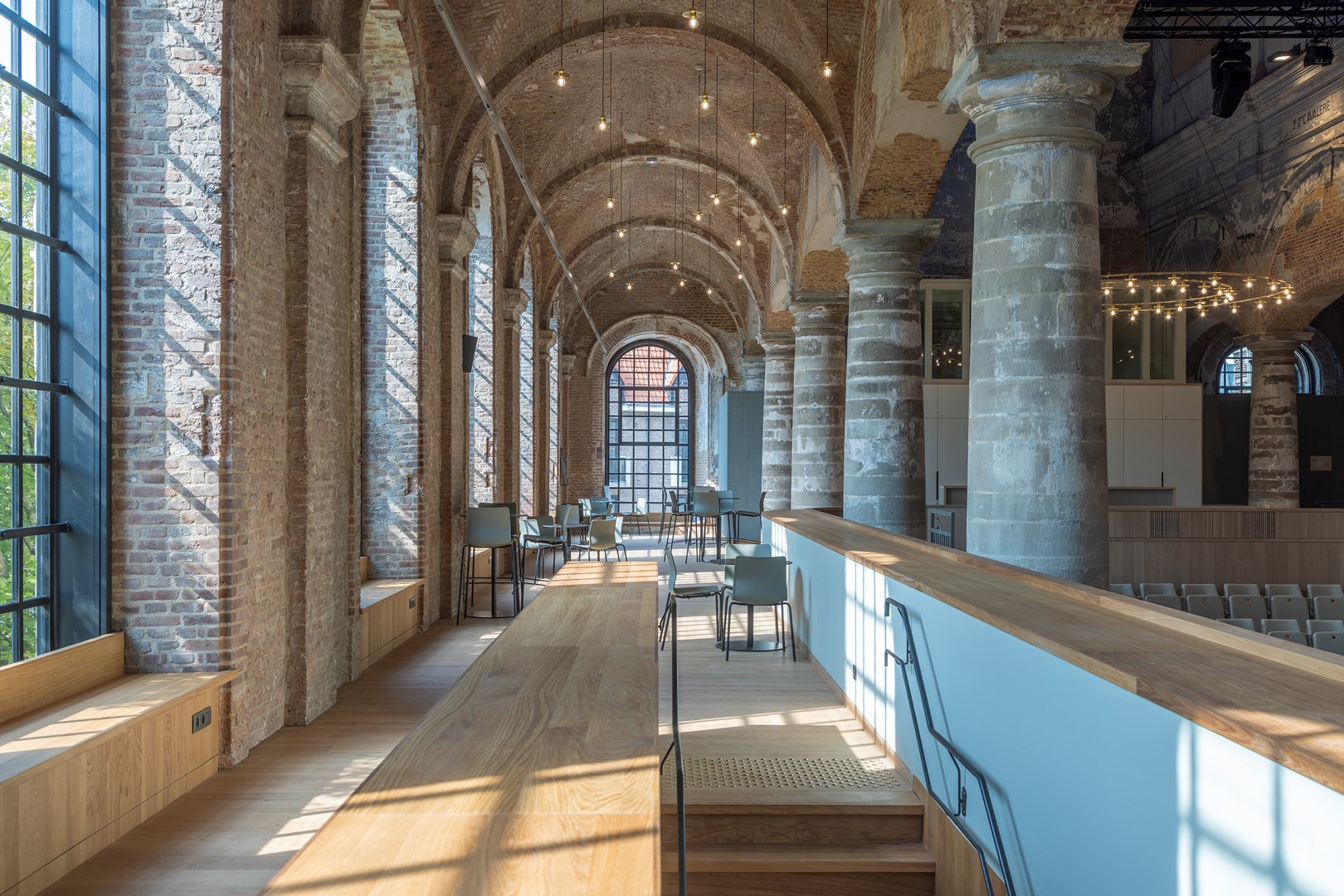De renovatie van de Predikherenkerk markeert de voltooiing van een ambitieus restauratieproject dat meer dan een decennium geleden begon. In 2012 werd het ontwerpteam Korteknie Stuhlmacher Architecten, in samenwerking met Callebaut Architecten en Bureau Bouwtechniek, aangesteld voor de restauratie en herbestemming van het historische kloostercomplex. Na jaren van renovatie opende het voormalige Predikherenklooster in 2019 zijn deuren als de nieuwe stadsbibliotheek van Mechelen, ‘een plek om op verhaal te komen’. Sindsdien heeft Het Predikheren meerdere prijzen in de wacht gesleept als culturele hotspot. Na de opening van de vernieuwde stadsbibliotheek was het de beurt aan de naastgelegen kerk, een indrukwekkend monumentaal bouwwerk met een rijke geschiedenis en prachtige architectuur. Daken en gewelven werden opgeknapt, muren en ramen gerestaureerd. Het resultaat is een prachtige podiumzaal die ruimte biedt voor voorstellingen, congressen en andere bijeenkomsten. “Deze ruimte zal dienen als dé spil voor professionele jazz- en klassieke muziekensembles in de stad, maar ook als ruimte voor lezingen en congressen”, zegt Björn Siffer, schepen van Cultuur (voor Mechelen). Deze herbestemming versterkt Mechelen als cultuurstad en zal Het Predikheren nóg meer doen bruisen.