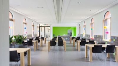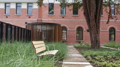 In 2002 kwam er een open oproep voor de uitbreiding van het Openbaar Psychiatrisch Zorgcentrum (OPZ) in Geel. Het betrof de restauratie van het oude ziekenhuis tot rehabilitatiecentrum. OMGEVING won met hun ontwerp, dat de oude elementen in ere herstelt. Op de open afdeling is plaats voor 31 patiënten die klaar zijn om terug deel te nemen aan de samenleving, maar toch nog een veilige haven behoeven. Daarnaast is er plaats voor twee therapiehuizen. Naast een masterplan diende OMGEVING ook een ontwerp voor de buitenruimten in.