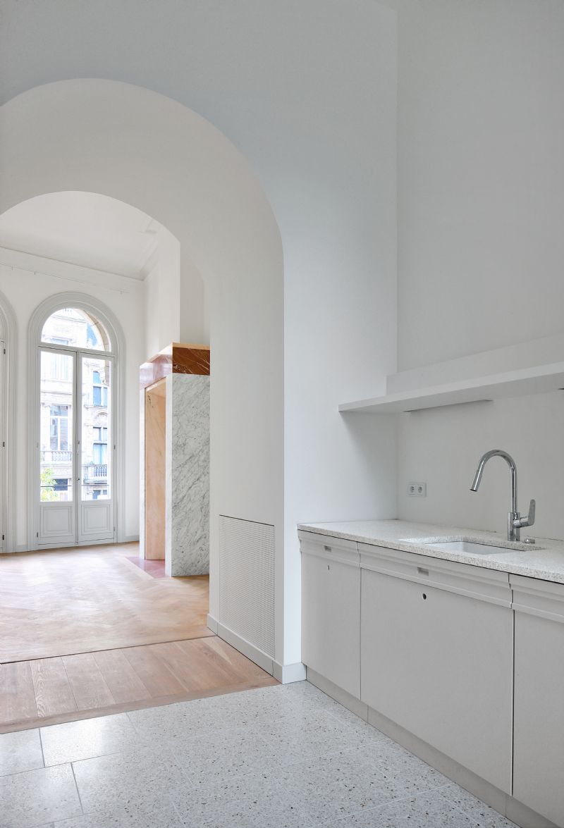 In de verbouwing van de eclectische panden in de Leysstraat in Antwerpen heeft Bovenbouw Architectuur een historisch pand met veel empathie een tweede adem gegeven. Drie woningen werden verbouwd tot acht appartementen en twee winkelruimtes. Achter de flamboyante, eclectische gevel gingen een hele reeks oninteressante kamers schuil. Die schizofrenie tussen een meesterlijke gevel en een pover interieur probeerden de ontwerpers in het project op te heffen.