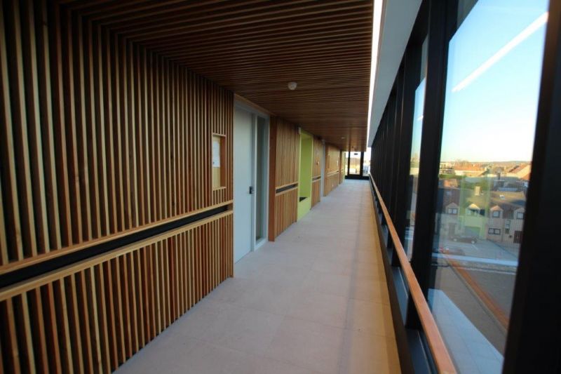Residentie Huiskensveld herbergt veertig gloednieuwe assistentiewoningen van 45 m², die ingeplant zijn boven op een ruime ondergrondse parking. Dankzij verbindingen in de vorm van beglaasde passerelles vormt het langgerekte complex een drie-eenheid met woonzorgcentrum Zonnig Huis en Centrum Van Koekenbeek.