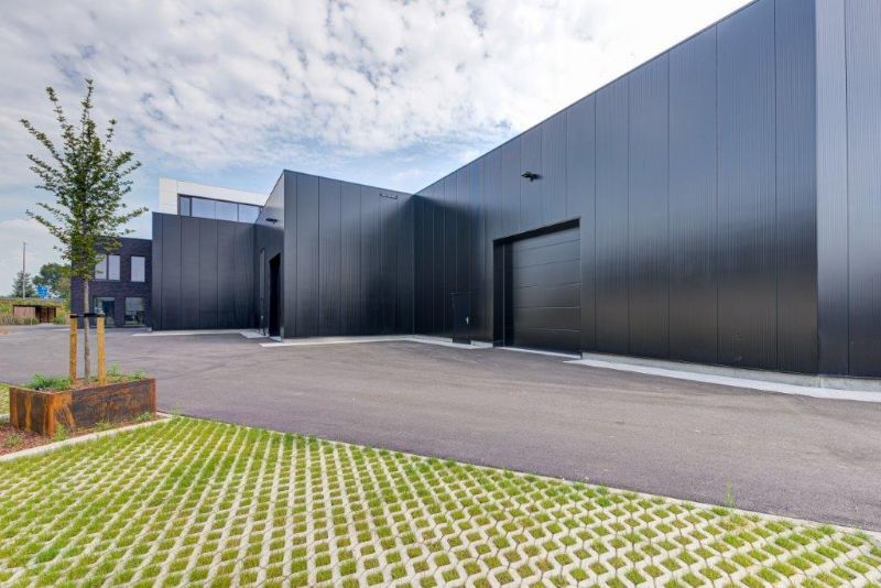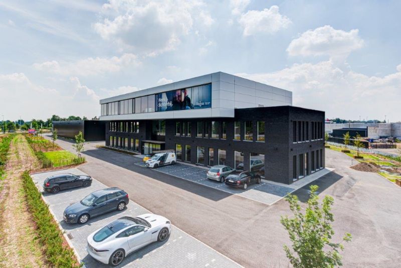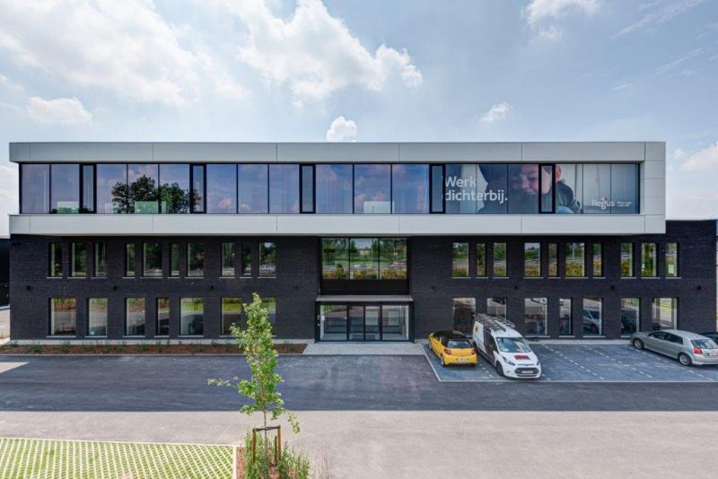 Coworkingspace in een BEN-kantoor langs de E19. Op dezelfde site werden ook twee retailpanden, een opslaggebouw en drie kmo-units opgetrokken.