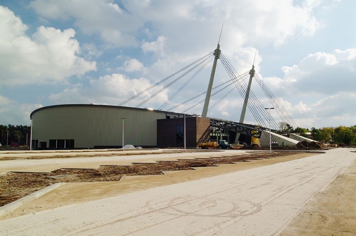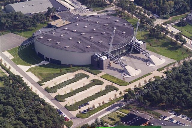 Evenementenzaal in Lommel. Het ontwerpteam bestond uit een tijdelijke vereniging genaamd "Gruppo Dromo". De leden van deze tijdelijke vereniging waren Scoop, Simoni, Scarpa, @rchitectenbureau L-Groep, Ontwerp- en adviesbureau Libost-Groep, Technobrevetti en Paolucci.