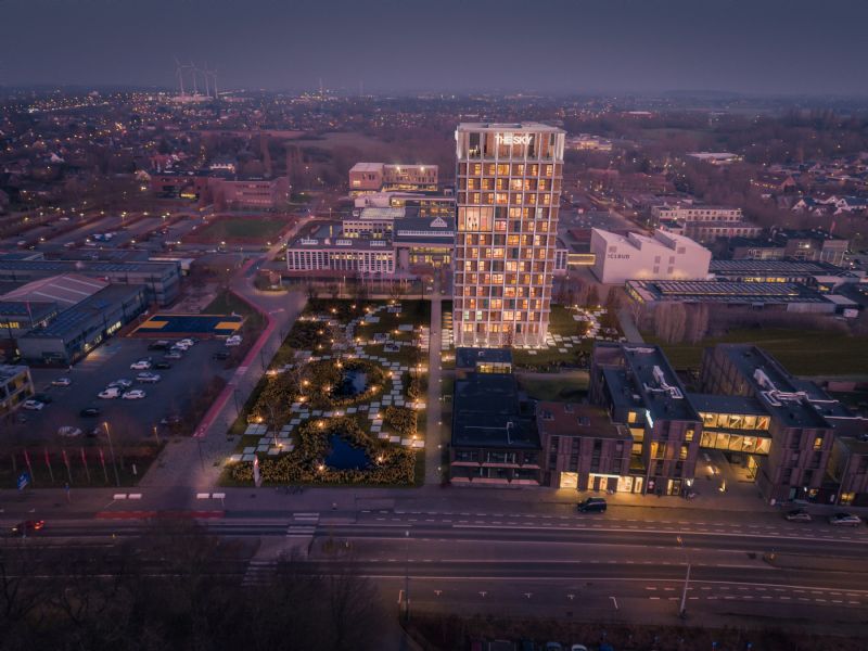 Op de campus van Hogeschool VIVES in Kortrijk verrijst The Sky naar het ontwerp van Link Lab, Markland. Stay Studio stond in voor het interieurontwerp. De bouwwerken starten begin 2023, zodat de eerste studenten er nog voor 2025 hun intrek kunnen nemen.The Sky is een 53 meter hoge woontoren – daarmee ook een van de hoogste gebouwen van Kortrijk - met 192 studentenkoten, een klein auditorium, een studeerruimte en een samenwerkingsruimte. Het pronkstuk van het gebouw wordt het grote dakterras met een panoramisch zicht over de stad. Bovendien krijgt de campus er meteen ook een nieuw stuk park bij, goed voor 3.439 vierkante meter groen.