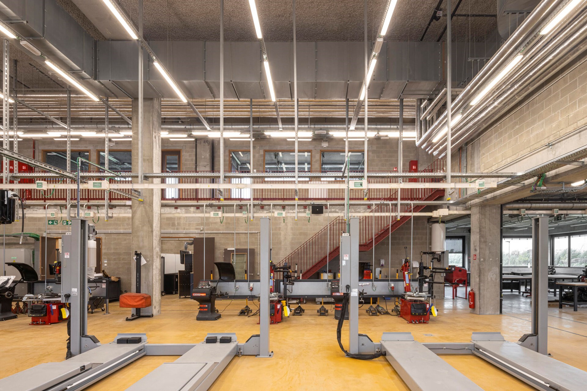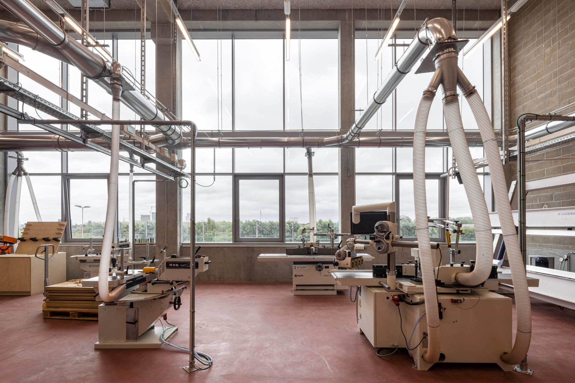 Het braakliggende terrein "Petroleum Zuid" ten zuiden van Antwerpen wordt ontwikkeld tot een duurzaam bedrijventerrein onder de naam Blue Gate. Naast de commerciële component voorzien de plannen in een groene corridor en openbare voorzieningen. Als onderdeel van dit laatste programma ontwierp architectenbureau POLO een nieuw gebouw in een uithoek van het terrein dat twee beroepsscholen huisvest: WLAZ, die praktijkgericht secundair onderwijs aanbiedt in een werk-leerprogramma; en ENCORA, die beroepsvaardigheden onderwijst aan volwassenen. Het opvallende vrijstaande gebouw is een helder antwoord van de architect op een uitdagende driedimensionale puzzel, gedicteerd door strenge technische eisen en de beperkingen van een klein perceel.