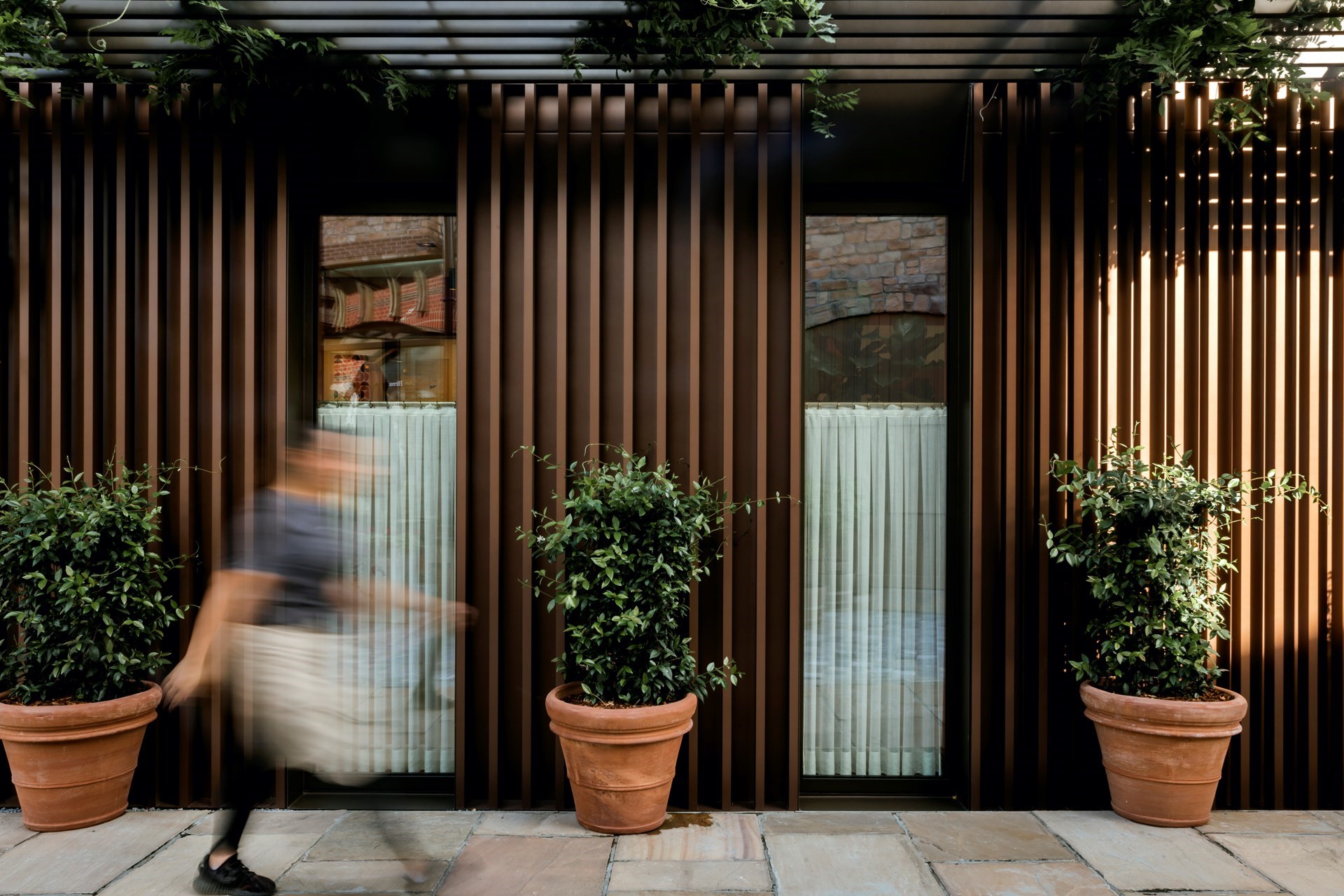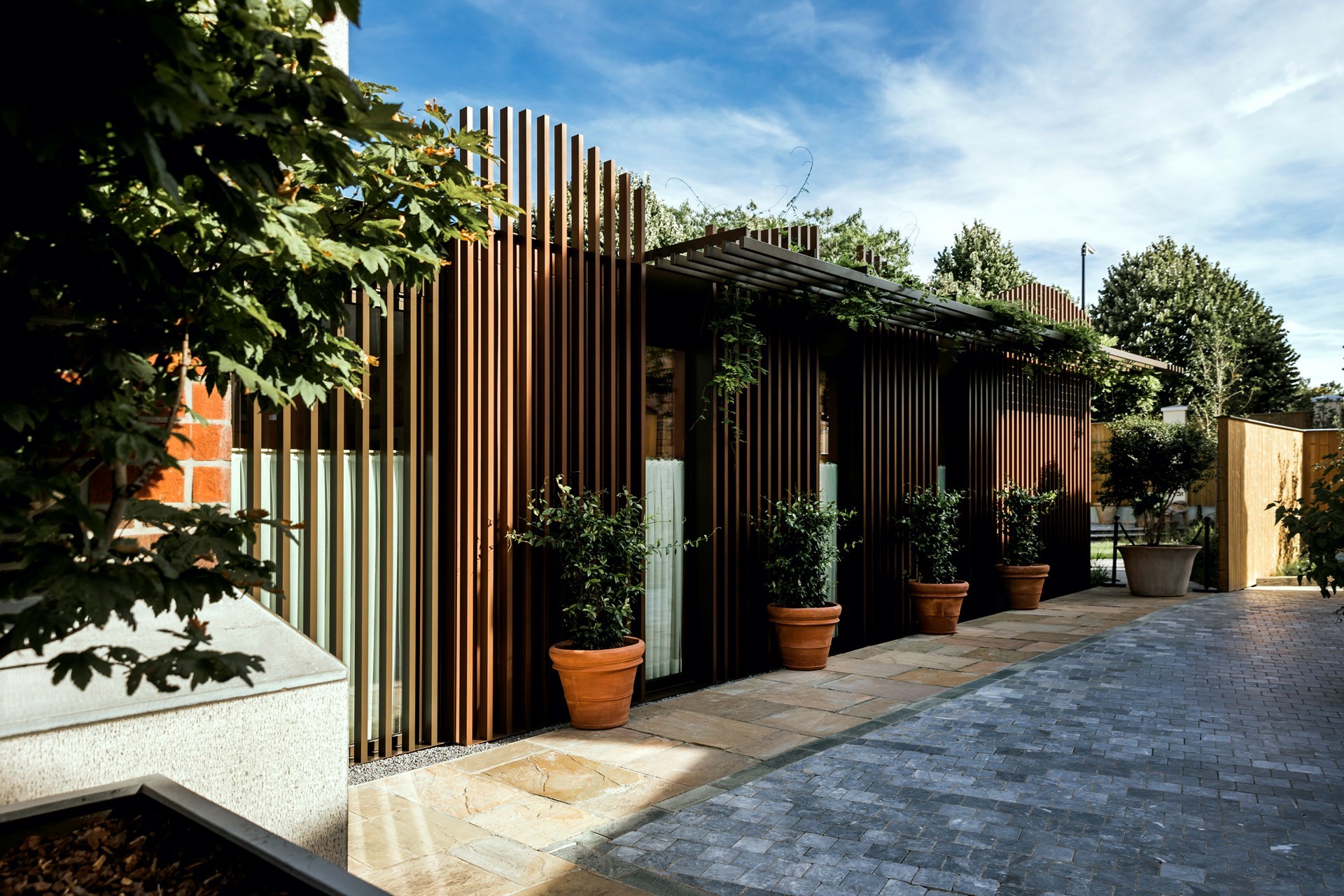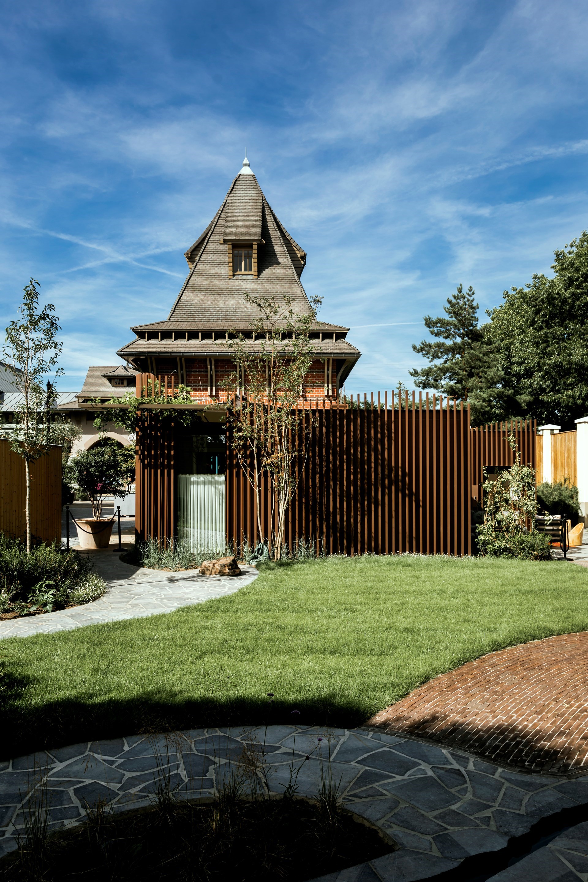 Een bijzonder tuinpaviljoen siert Maasmechelen Village. De architecten van Depot ontwierpen er een exclusieve VIP-lounge en Personal Shopping Space waar shoppers zich in de watten kunnen laten leggen. The Appartment is opgebouwd uit modulaire units die een luxueuze uitstraling verkregen dankzij een organische lamellenstructuur met warme bronzen kleur. Klimplanten banen zich een weg omhoog langs de gevels en dragen bij tot de sfeervolle tuinsetting.