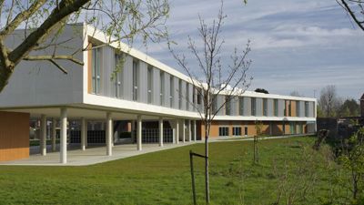 Het Koninklijk Atheneum Pegasus in Oostende breidt haar campus uit. 17 klassen en administratieve lokalen zullen huizen in een vrijstaande nieuwbouw. Leerlingen zullen hun fietsen ook kwijt kunnen in een nieuwe fietsenberging en de benen kunnen gestrekt worden in een overdekte speelplaats. Hoofdaannemer THV JUVALHO doelt de bouwwerken af te ronden in september. De ontwerpen komen van Urban Platform.