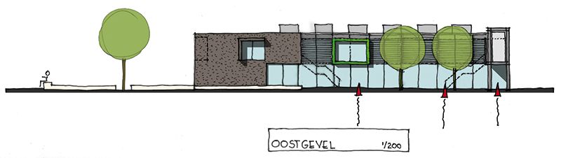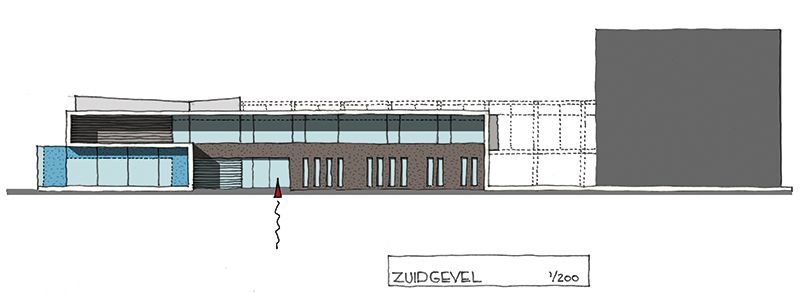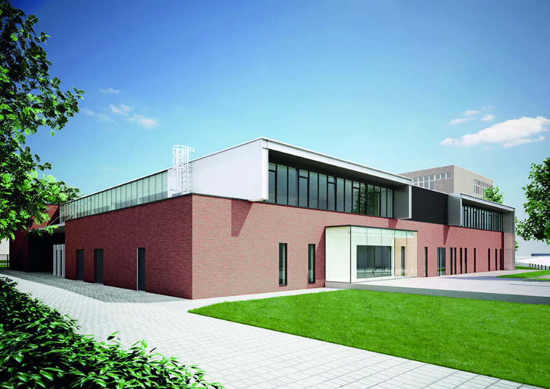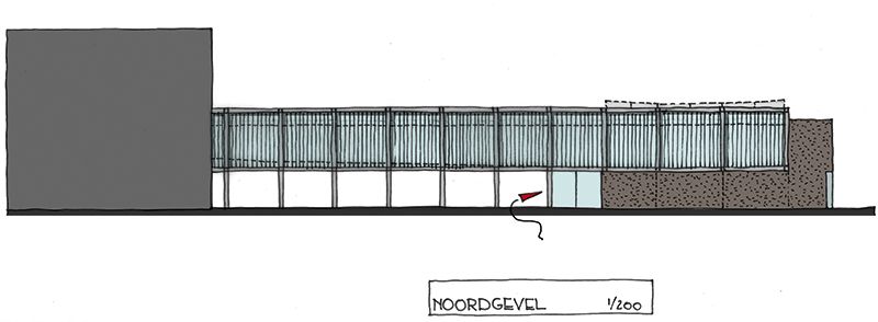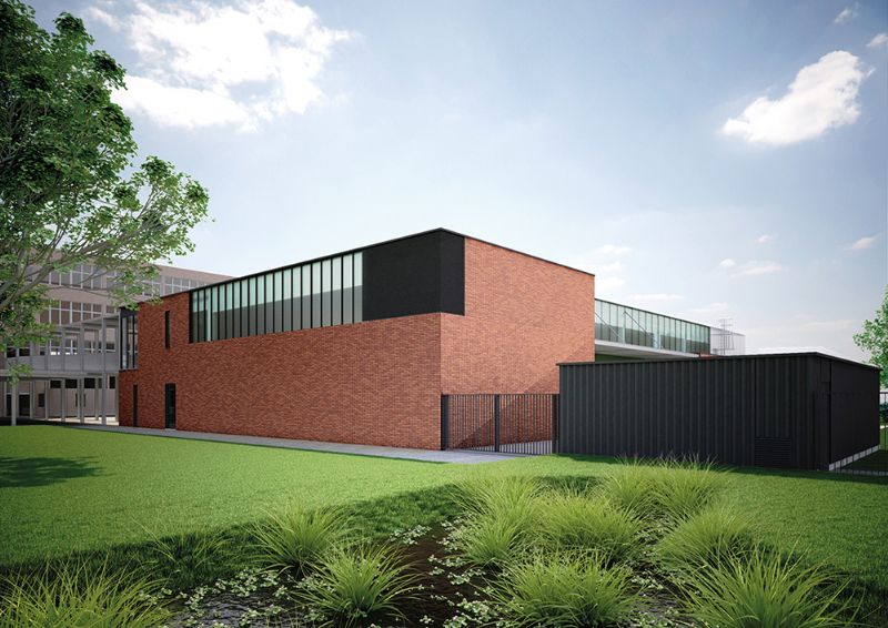 De voorontwerpen van het project zagen er meer open uit, maar vanwege veiligheidsredenen en de akoestiek heeft het architectenbureau gekozen voor een meer simpel en leesbaar ontwerp. Dankzij de bakstenen sokkel, sluit het nieuwe gebouw aan bij het oude. De bovenstructuur is uitgevoerd in vezelcementplaten die het dieper liggende raamvlak van de werkplaatsen omkadert en zorgt voor een optimale lichtinval in de werkplaatsen. Met een passerelle in staal wordt de verbinding gemaakt met het bestaande gebouw.